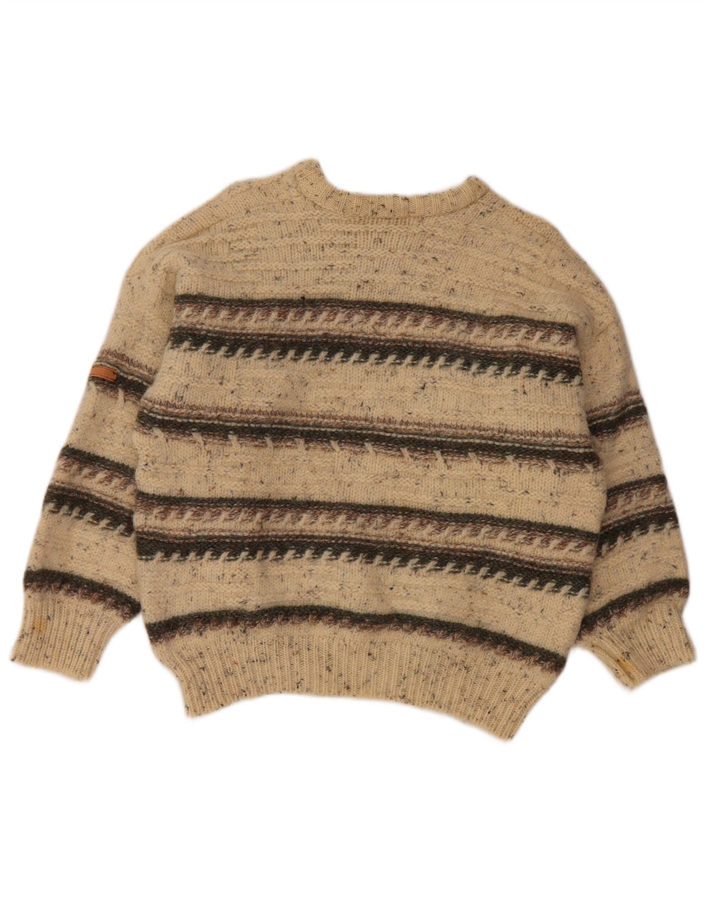 SERGIO TACCHINI Suéter feminino com gola redonda e listrado grande bege Reino Unido 16