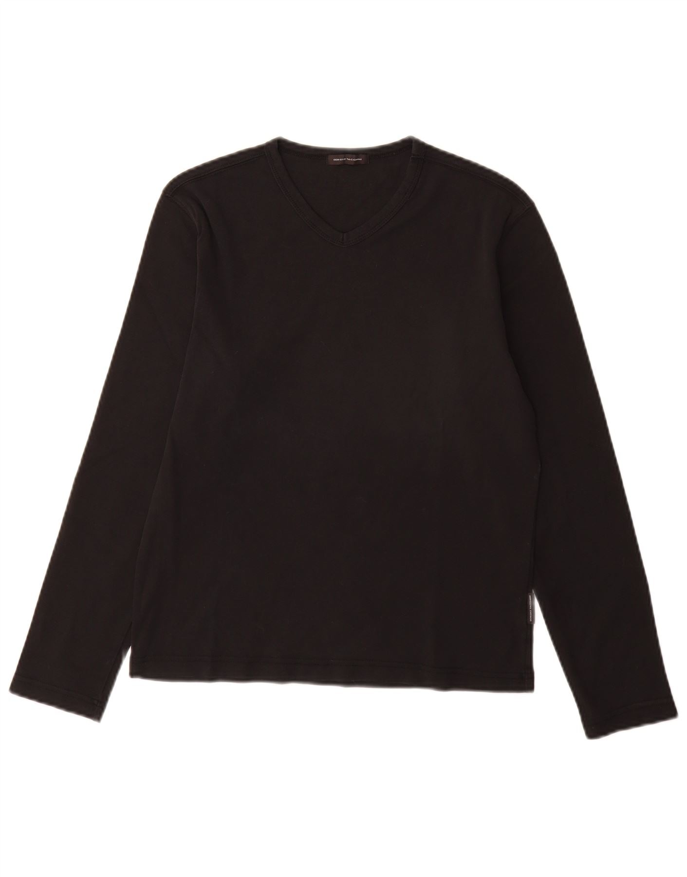 SERGIO TACCHINI Top feminino manga comprida UK 12 algodão preto médio
