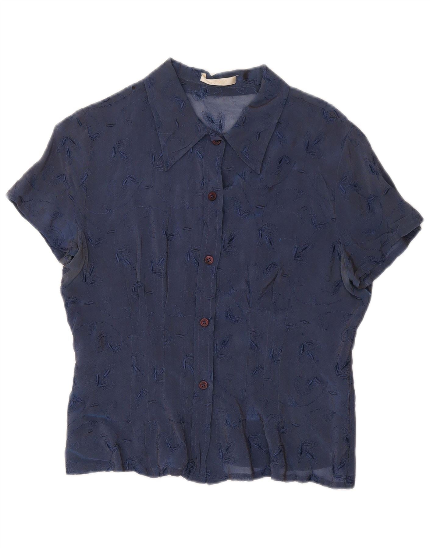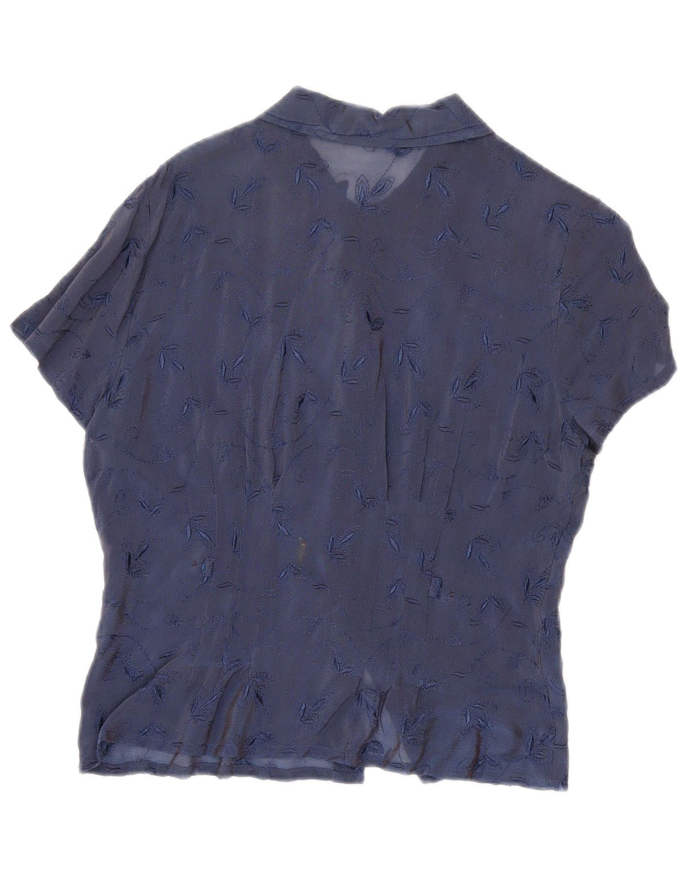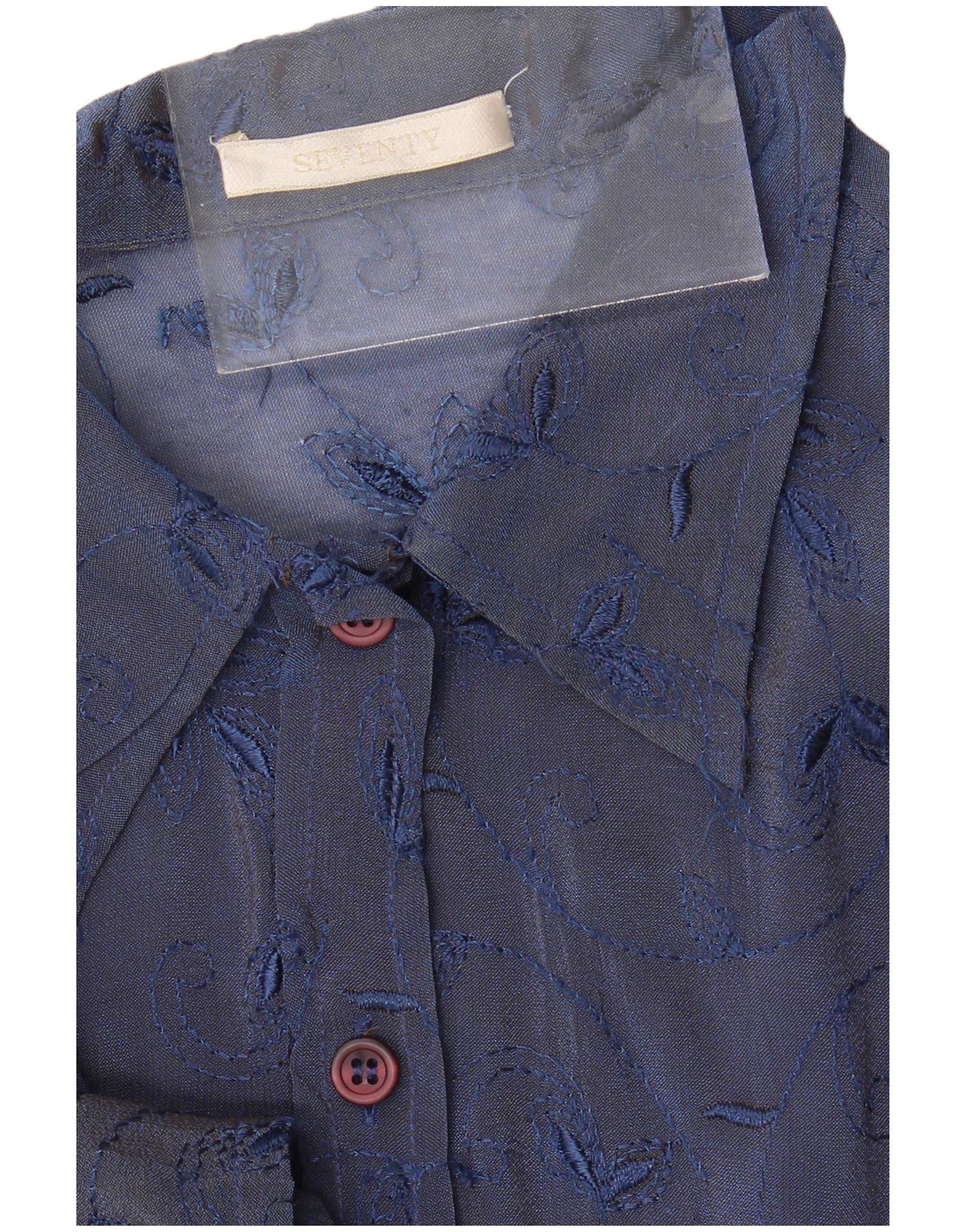 SEVENTY blusa feminina transparente Reino Unido 12 médio azul marinho floral