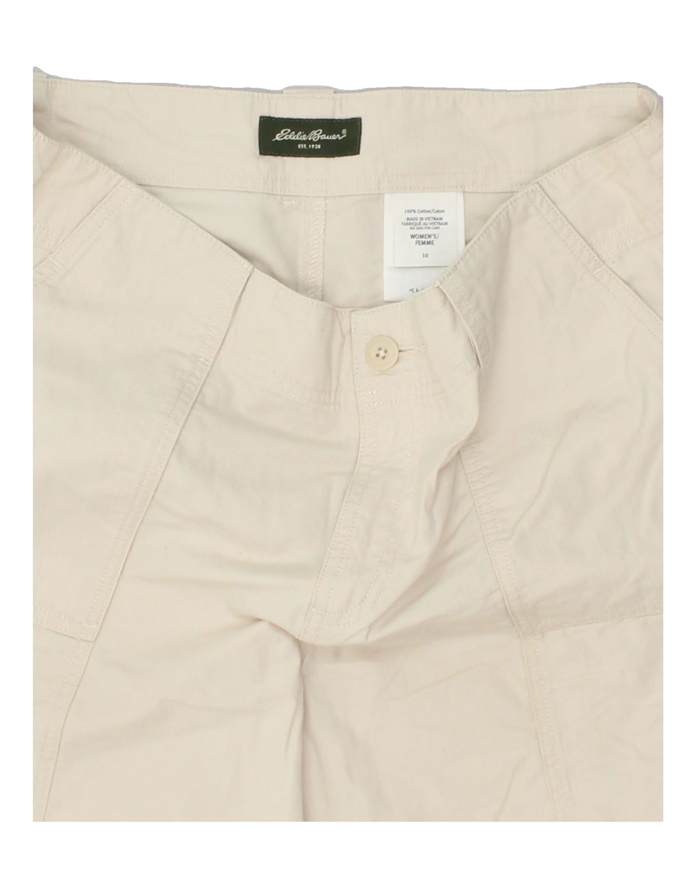 Shorts cargo feminino EDDIE BAUER EUA 10 grande W34 algodão bege