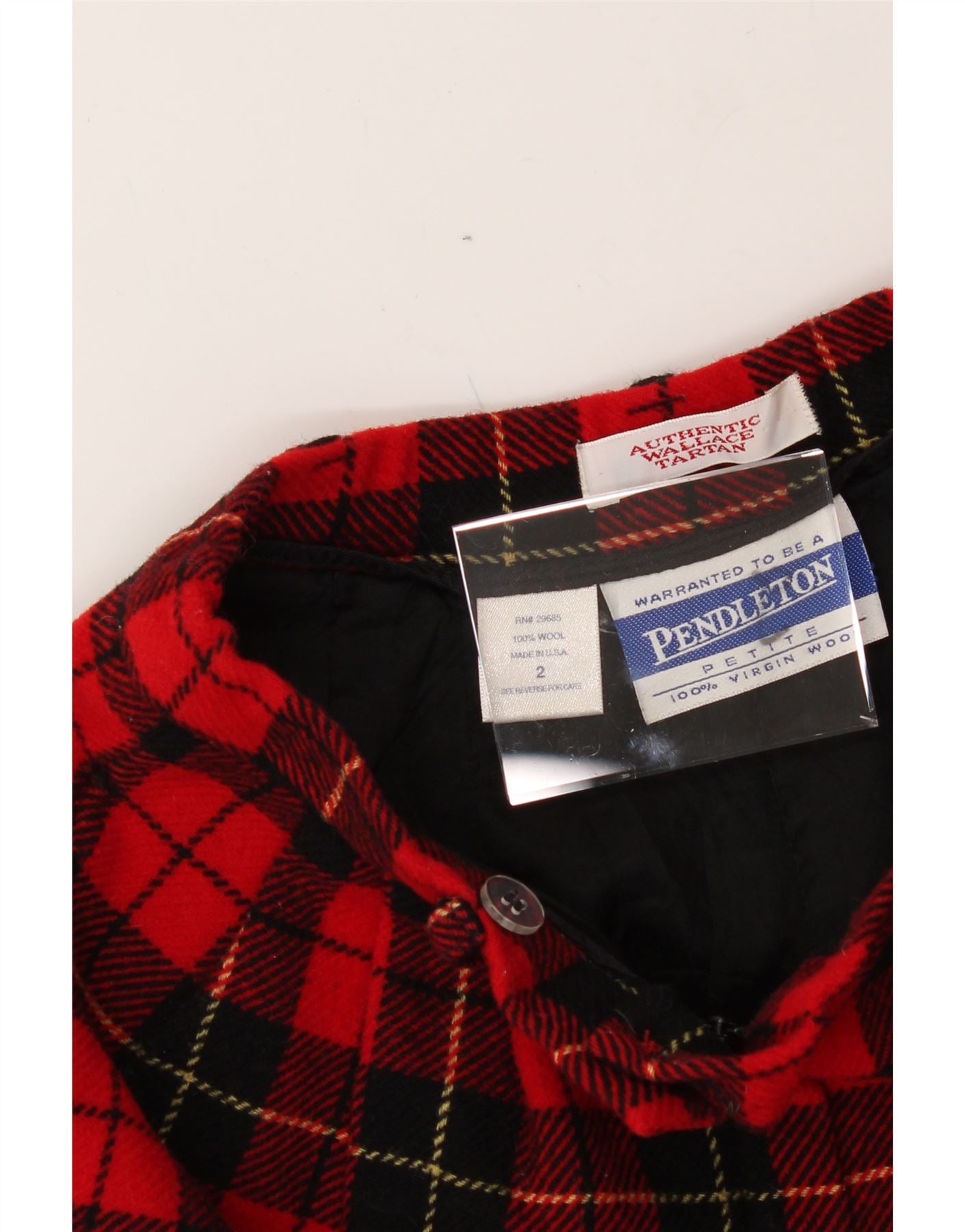 Shorts chino feminino de cintura alta PENDLETON EUA 2 XS W24 lã xadrez vermelha