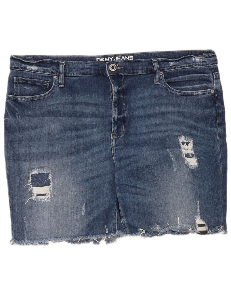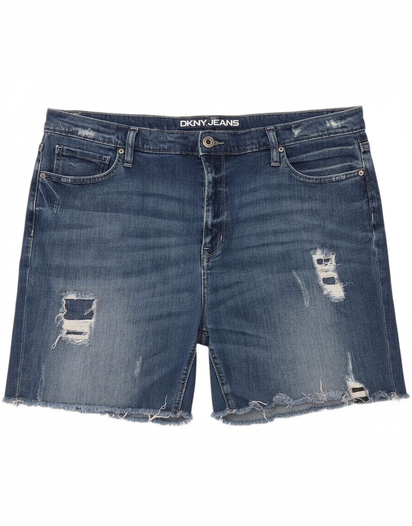 Shorts jeans feminino DKNY Boyfriend desgastado US 14 XL W34 algodão azul