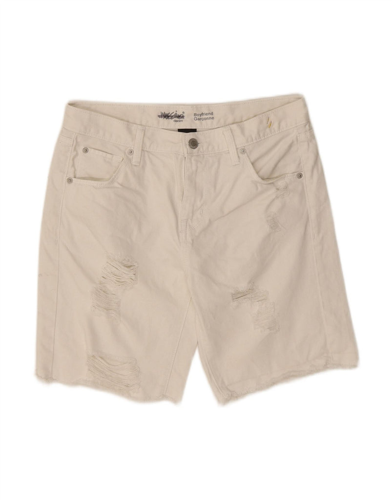 Shorts jeans feminino MOSSIMO Boyfriend desgastado EUA 4 pequeno W27 branco