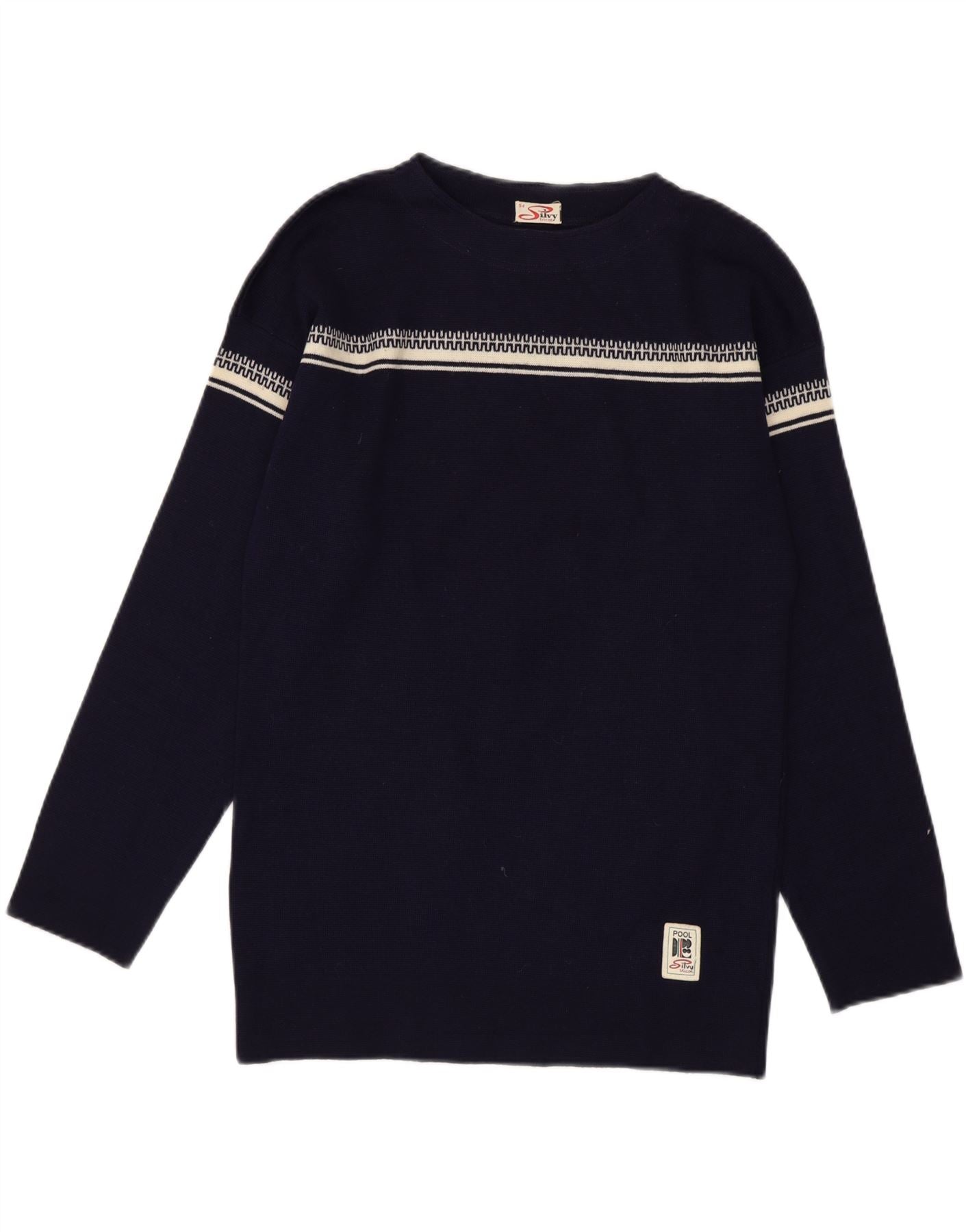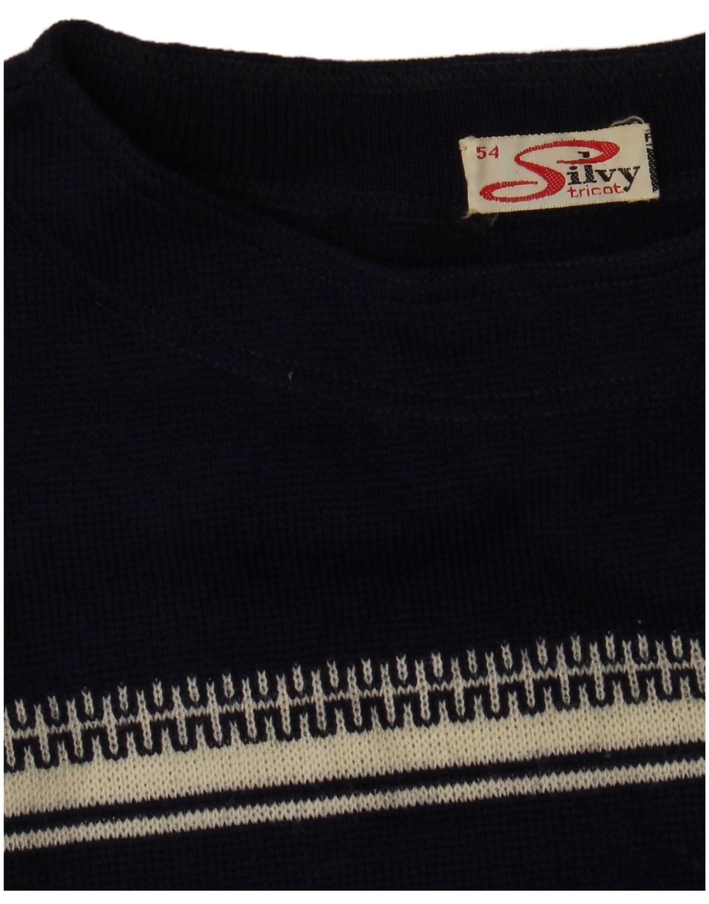 SILVY Suéter masculino tricotado com gola canoa IT 54 XL azul marinho listrado