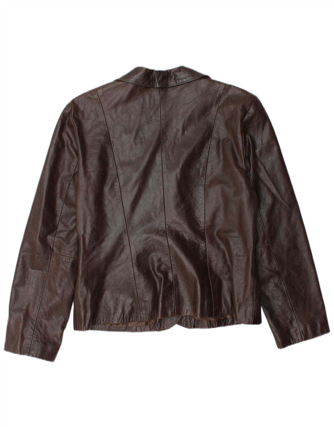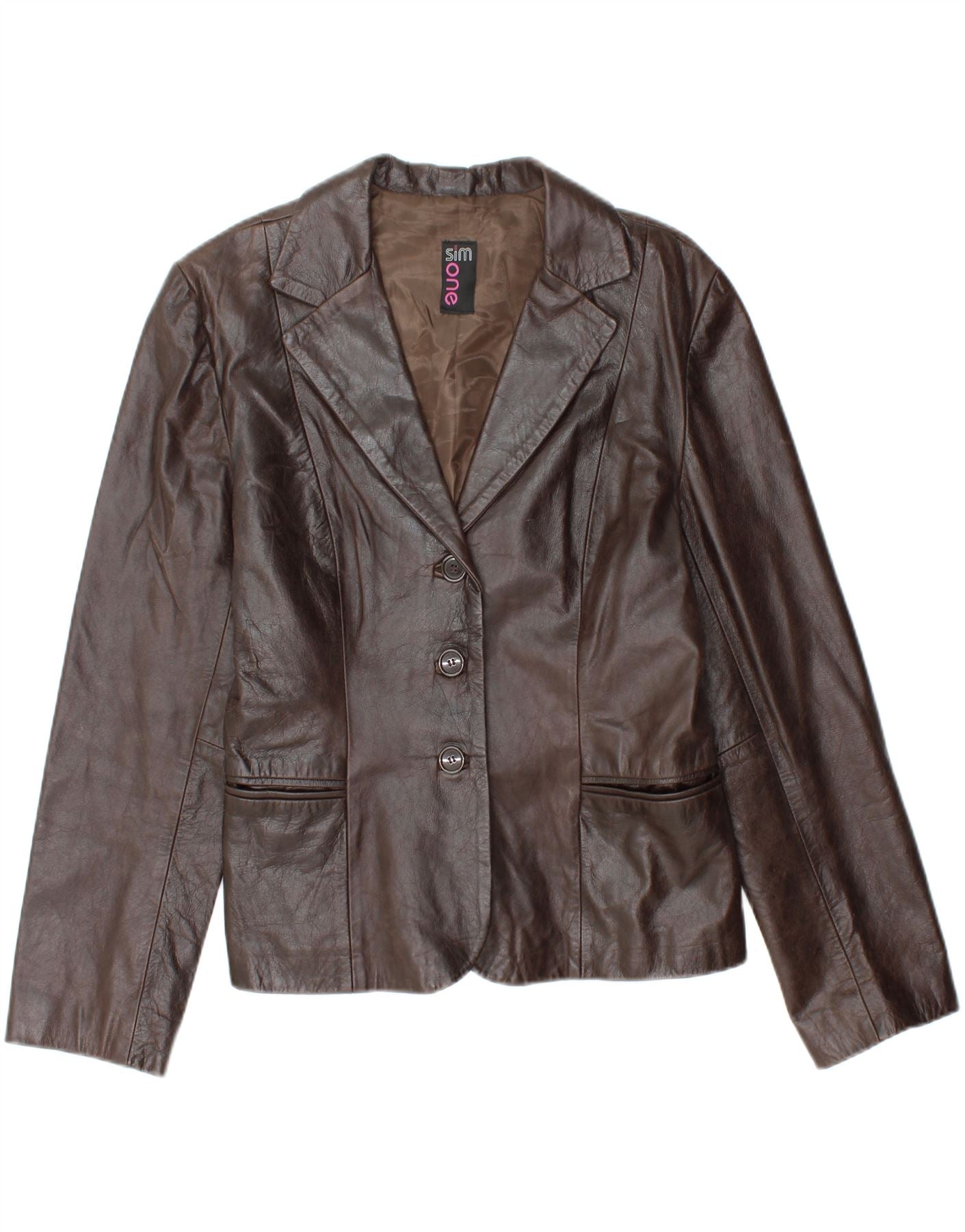 Jaqueta blazer feminina de couro com 3 botões SIMONE IT 52 2XL couro marrom