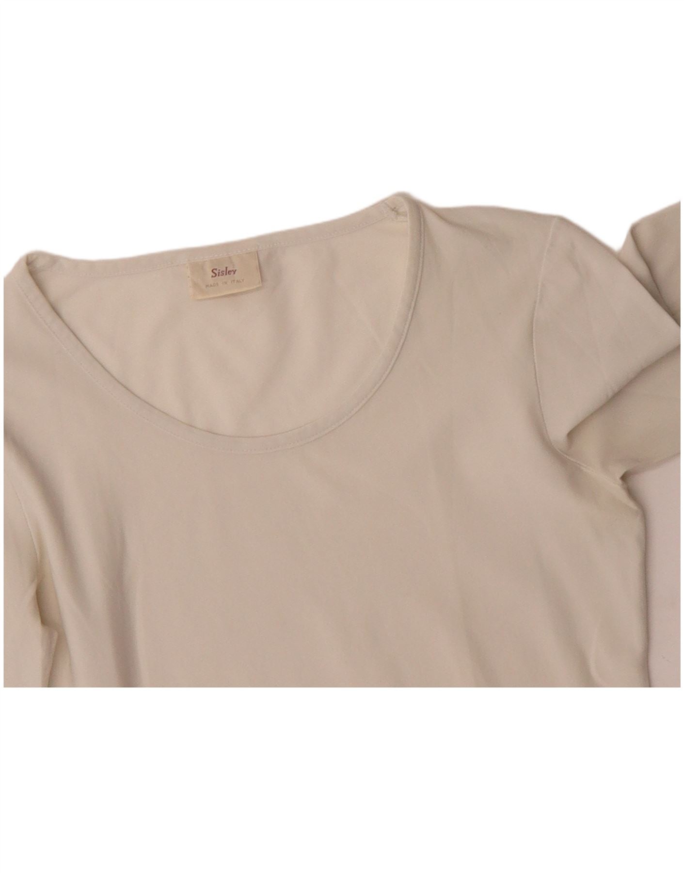 SISLEY Top feminino manga comprida UK 10 pequeno branco