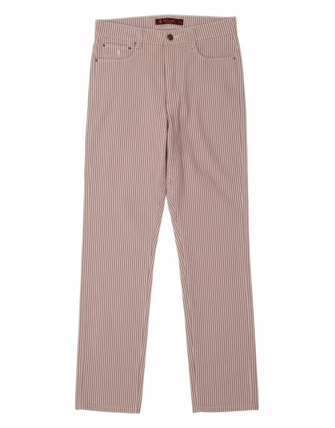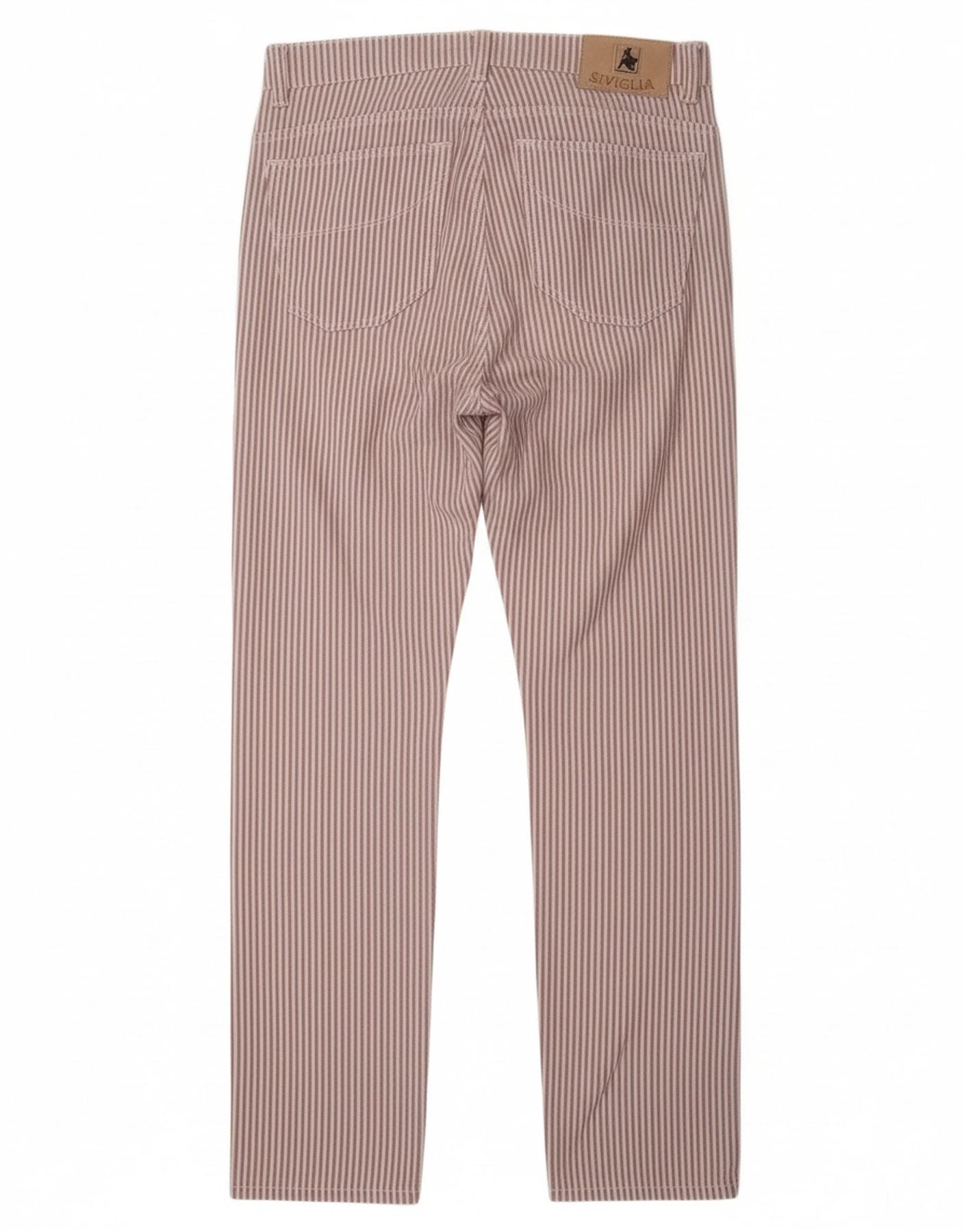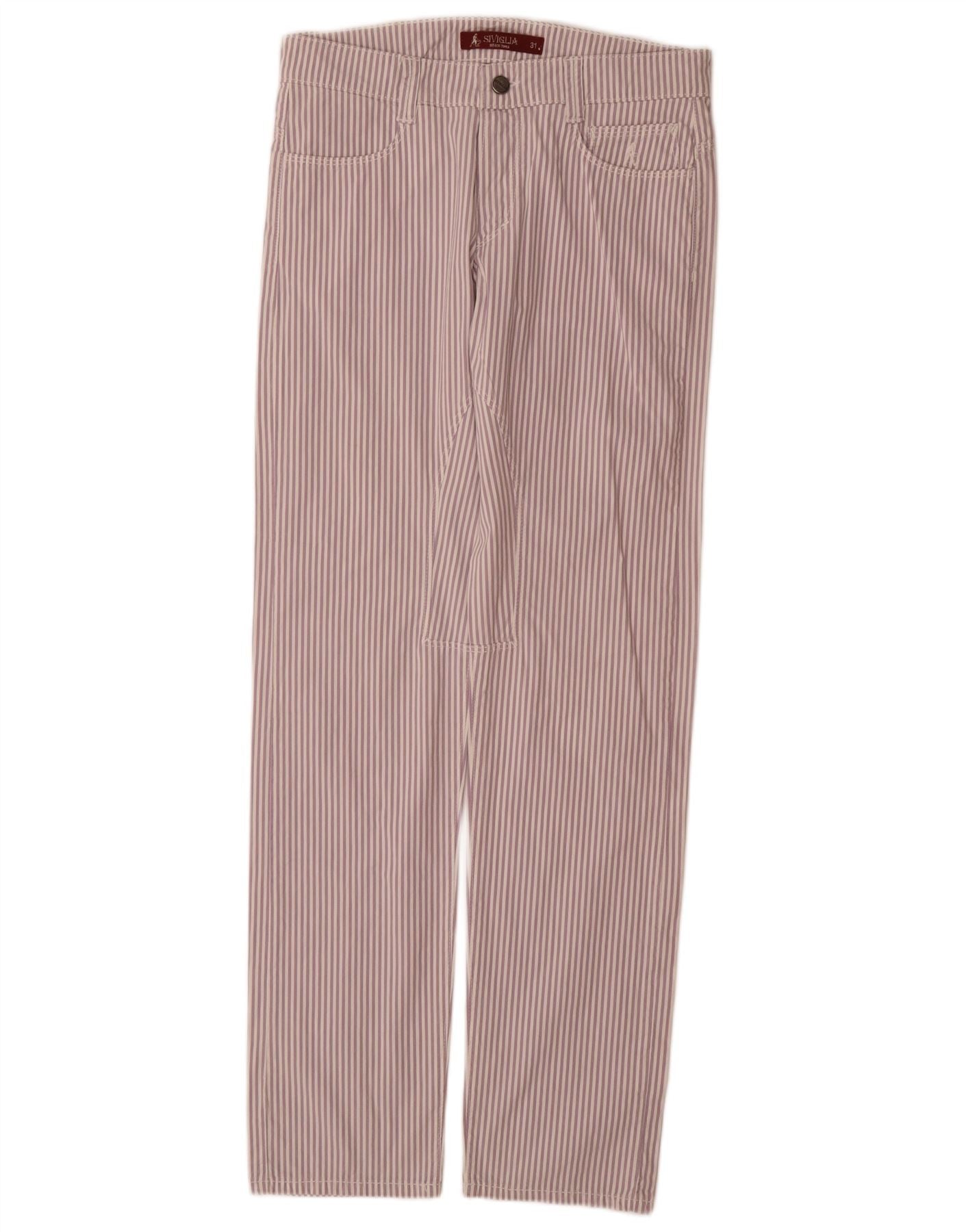 Calça feminina casual reta SIVIGLIA W31 L33 algodão listrado roxo