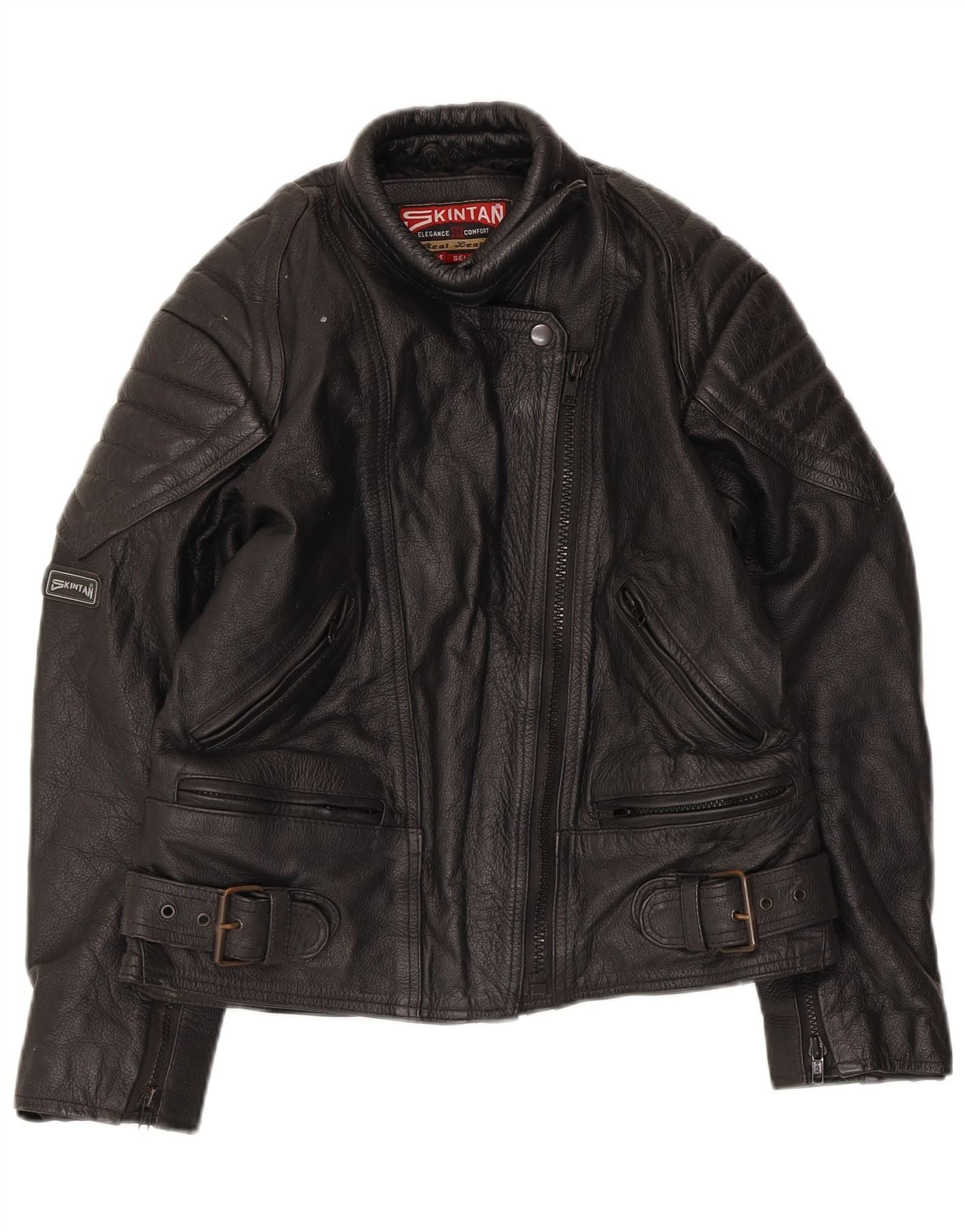 Jaqueta feminina de couro SKINTAN UK 10 pequena de couro preto