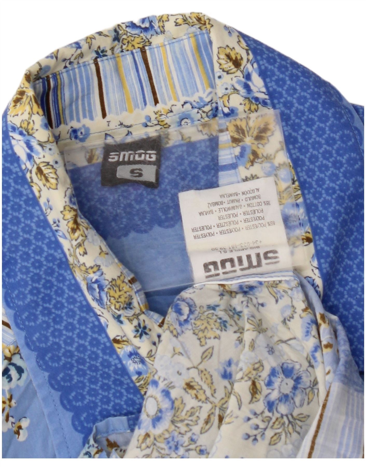 Camisa masculina SMOG pequena azul floral poliéster