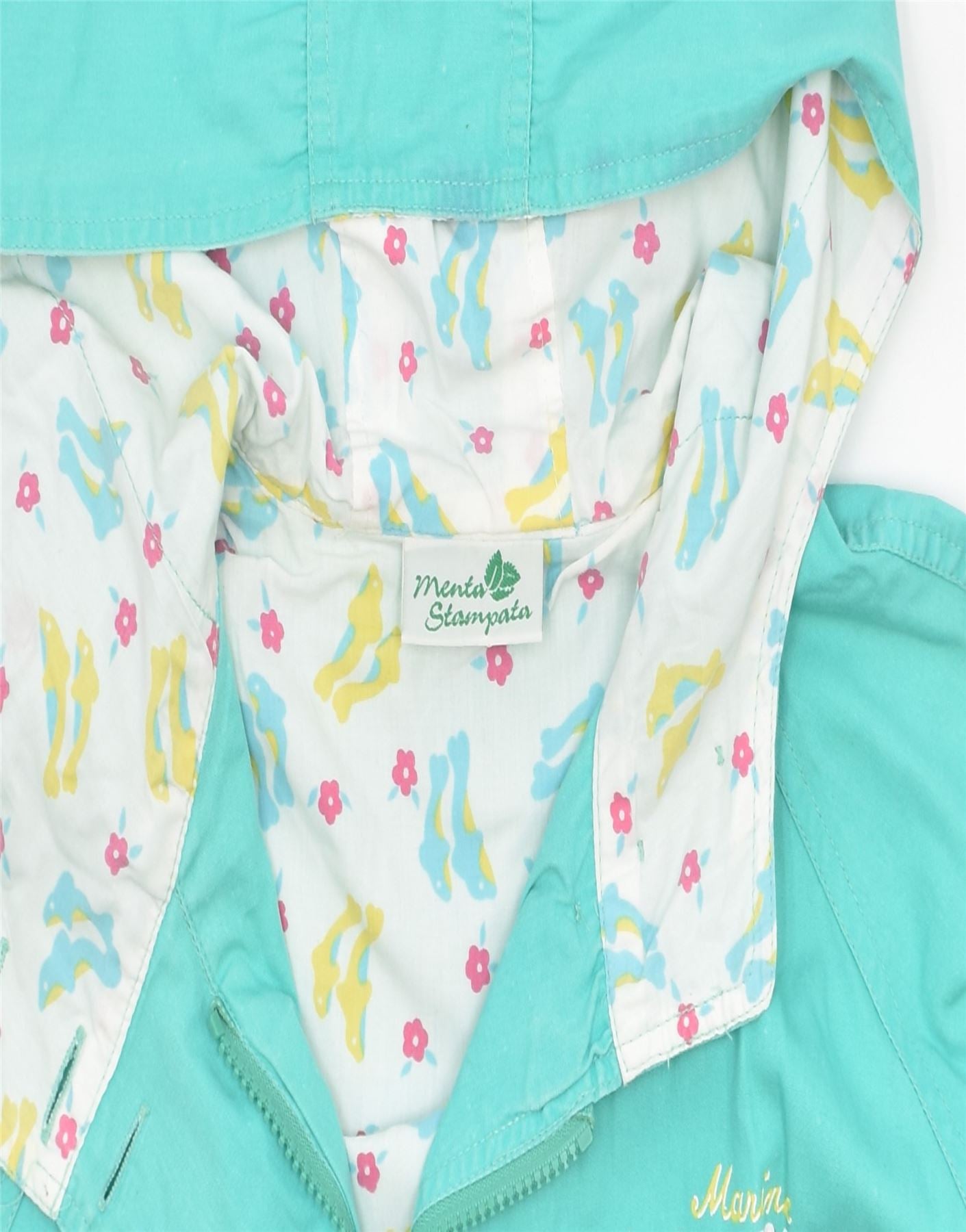 Sobretudo feminino VINTAGE com capuz gráfico IT 40 pequeno algodão turquesa