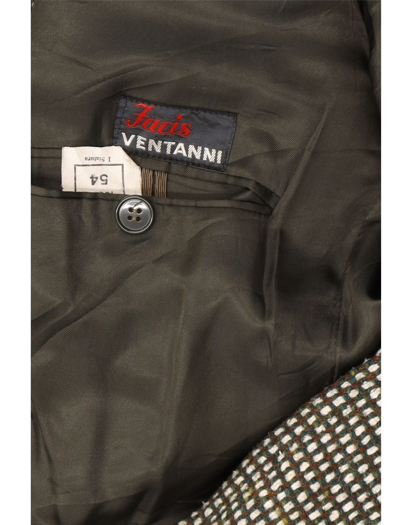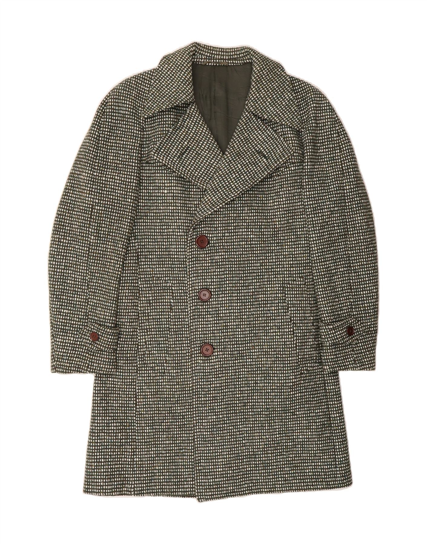 - Descrição da IA: Este sobretudo masculino vintage oferece estilo clássico em tweed houndstooth cinza. Possui fechamento por botão duplo, mangas longas e decote com gola. O casaco de corte regular, etiquetado no tamanho 54, é totalmente forrado e inclui bolsos práticos. Uma peça atemporal com detalhes em botões. Usado em excelente estado, apresentando leve desgaste geral.