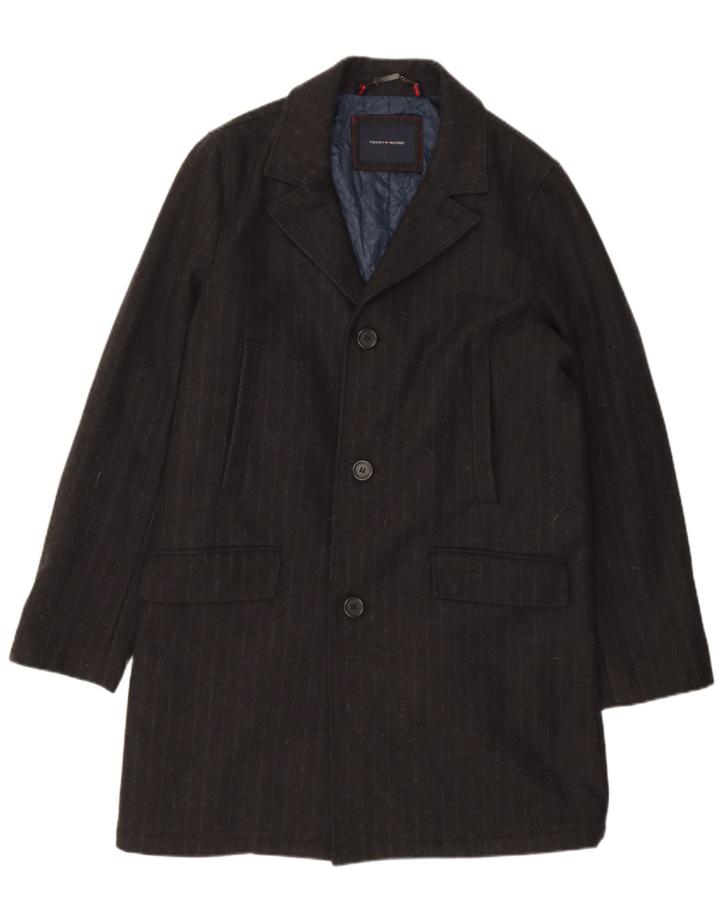 Sobretudo masculino TOMMY HILFIGER Reino Unido 38 lã listrada preta média
