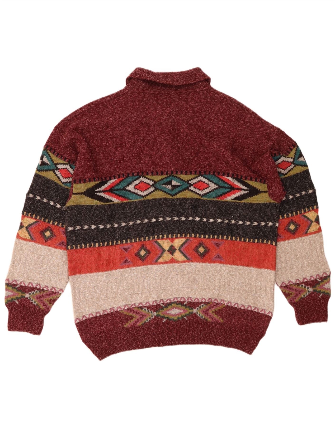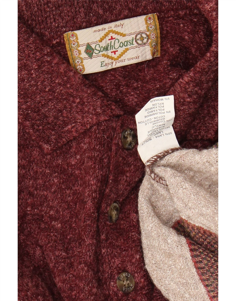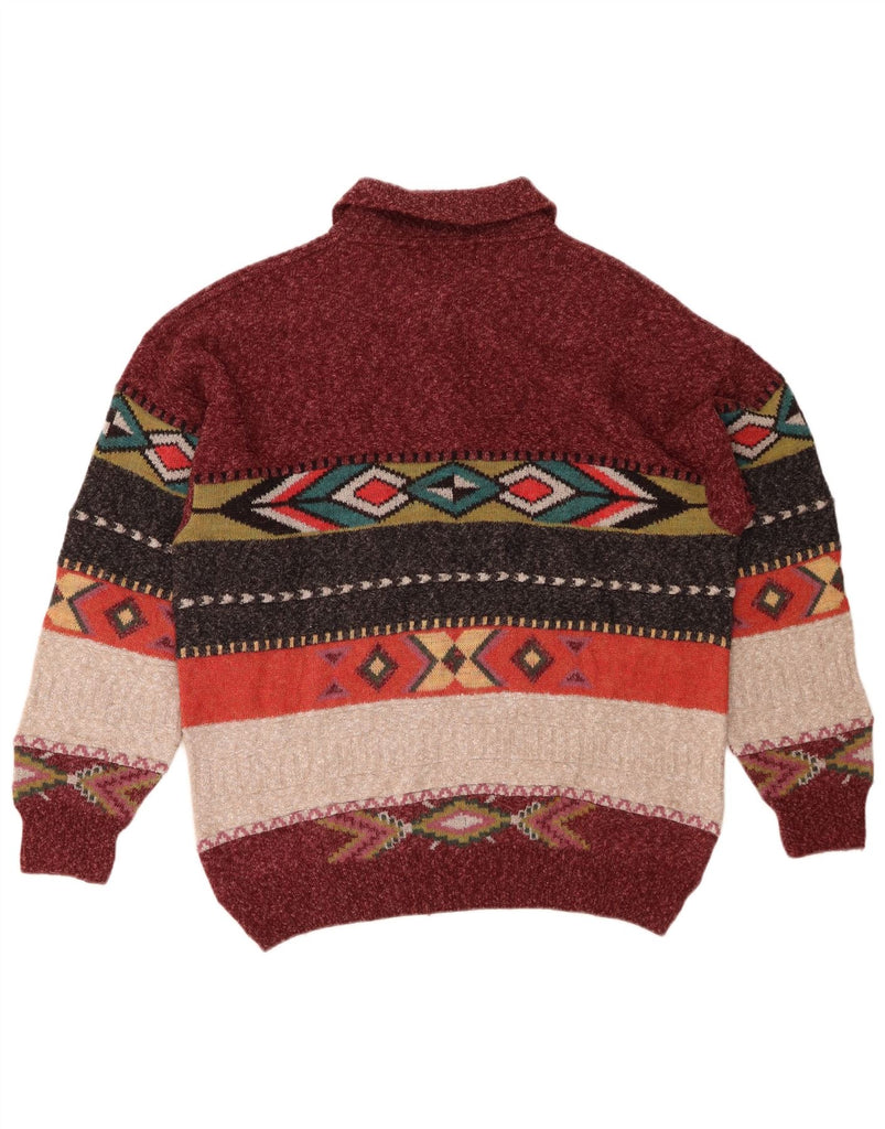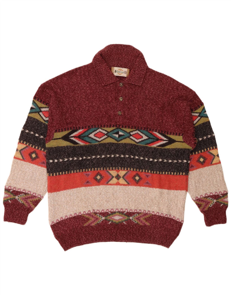 SOUTH COAST Mens Polo Neck Jumper Sweater XL Maroon Fair Isle Wool