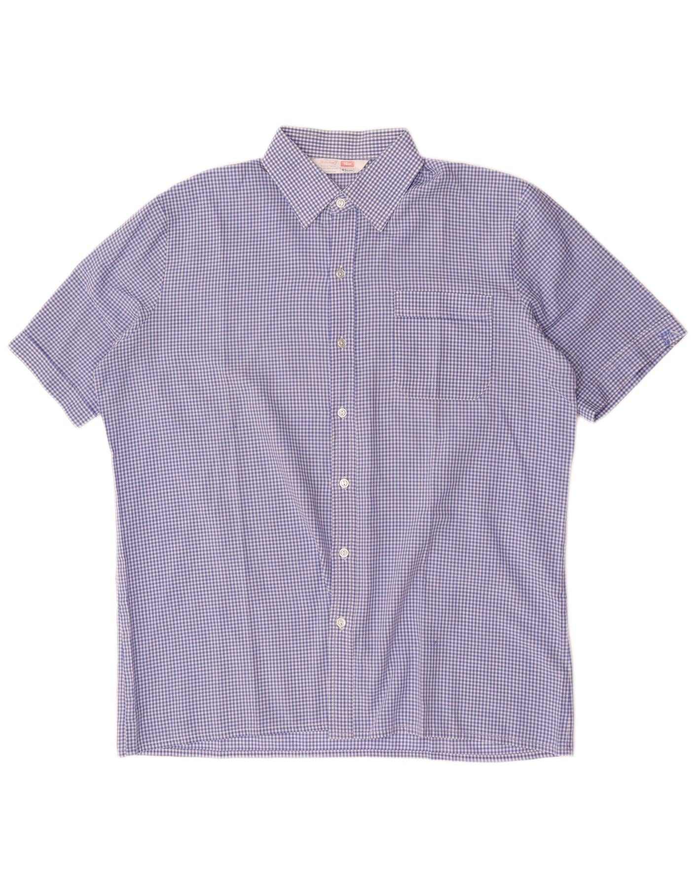 Camisa masculina de manga curta St Michael XL azul algodão guingão