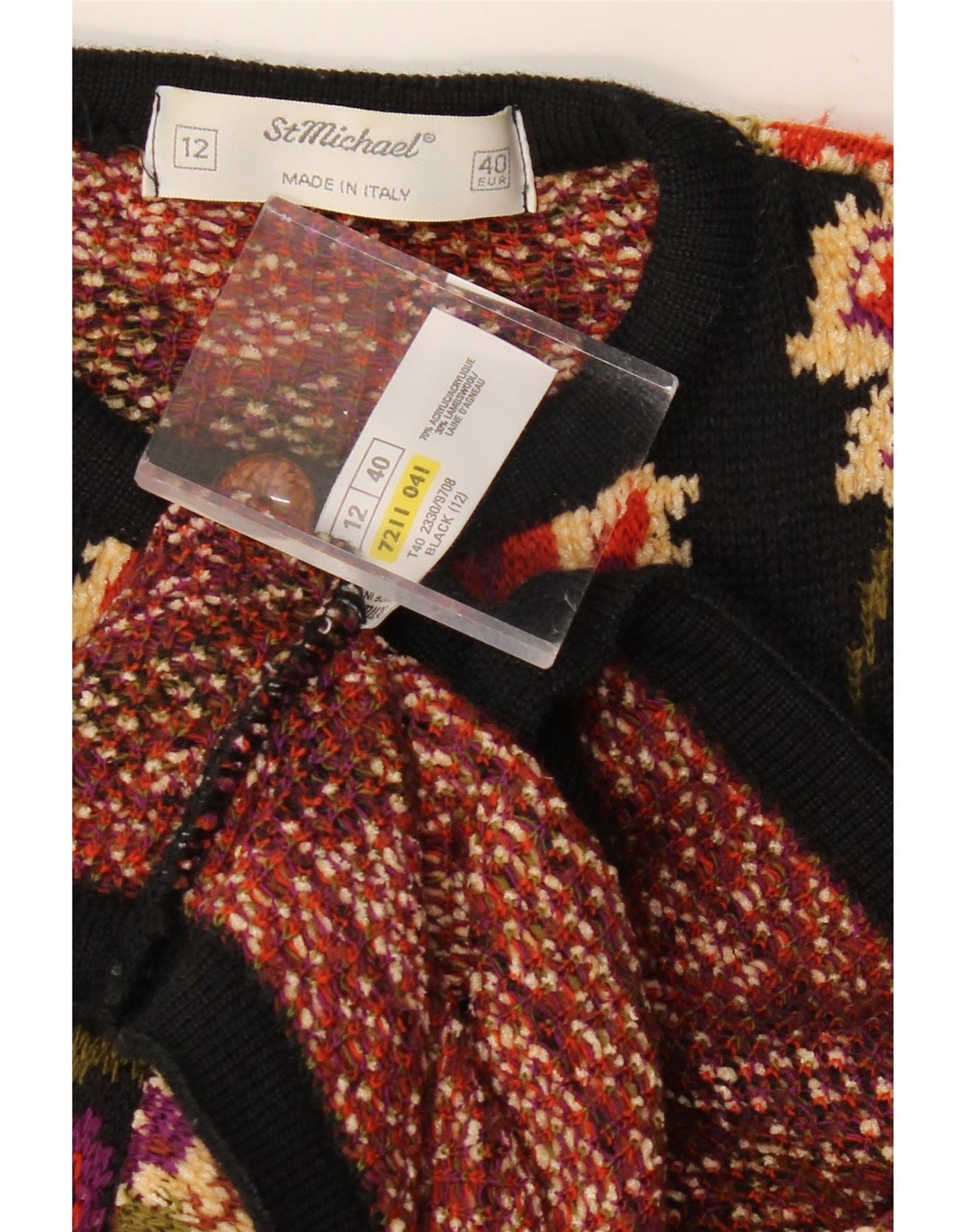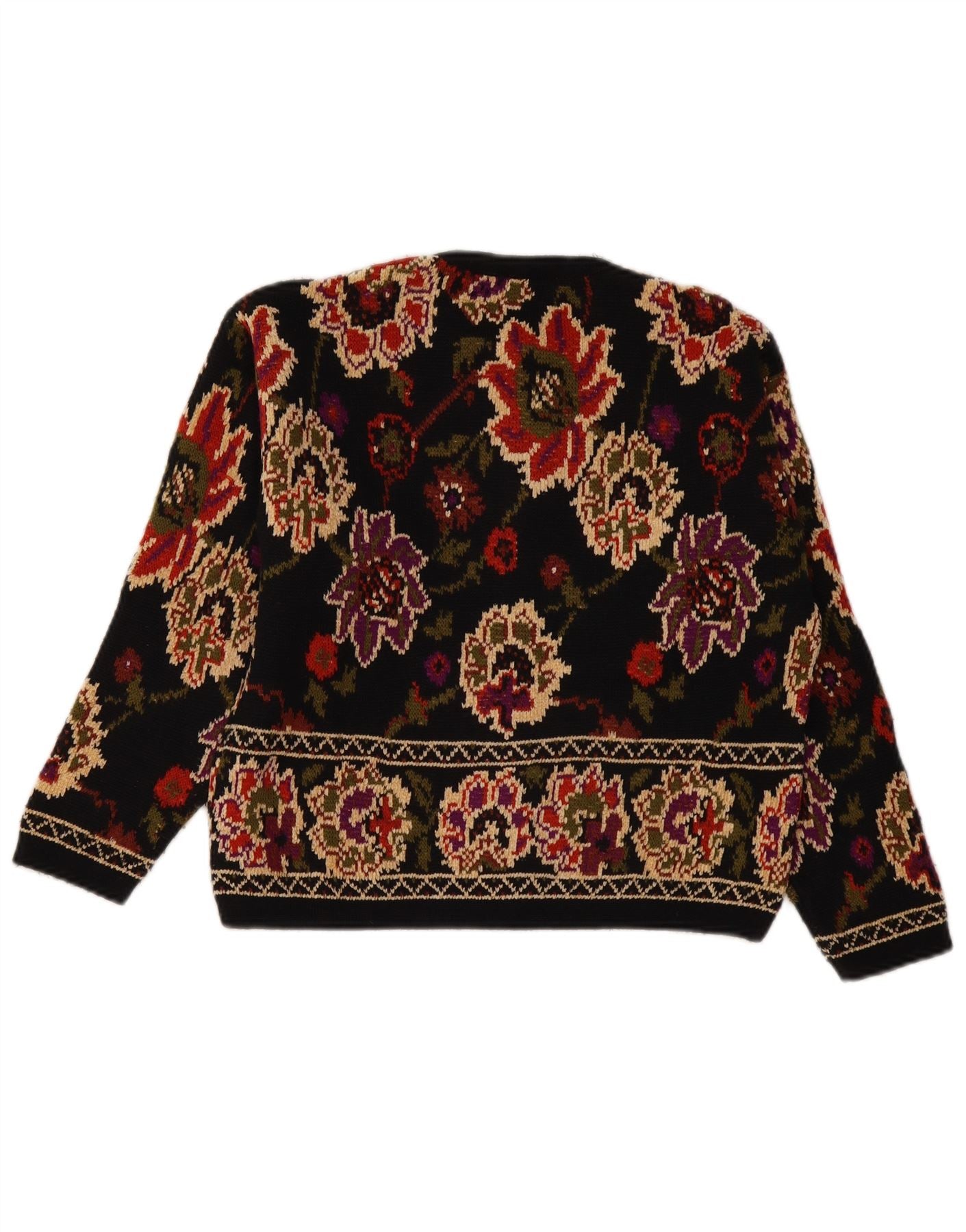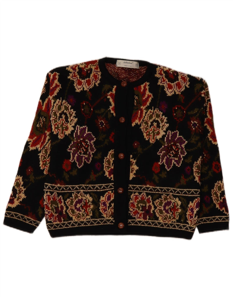 Suéter cardigã feminino ST MICHAEL Reino Unido 12 acrílico floral preto médio