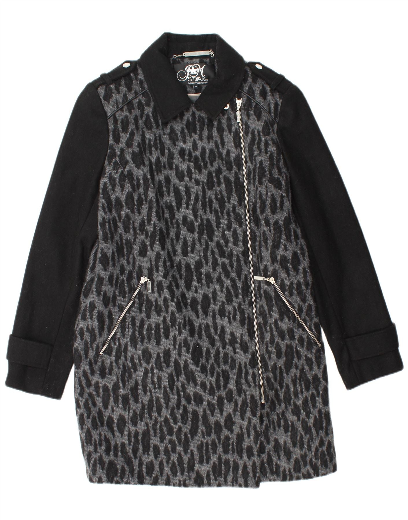 STAR BY JULIEN MACDONALD Womens Overcoat UK 14 Medium Black Animal Print