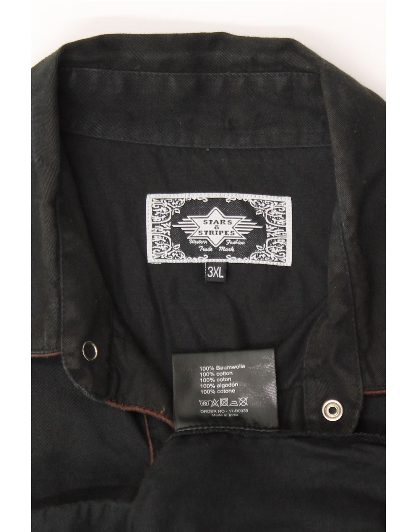 Camisa ocidental masculina STARS & STRIPES 3XL algodão preto