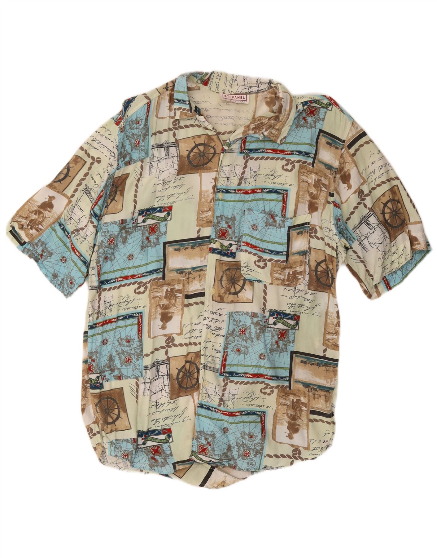 STEFANEL Camisa masculina gráfica de manga curta pequena patchwork multicolorido