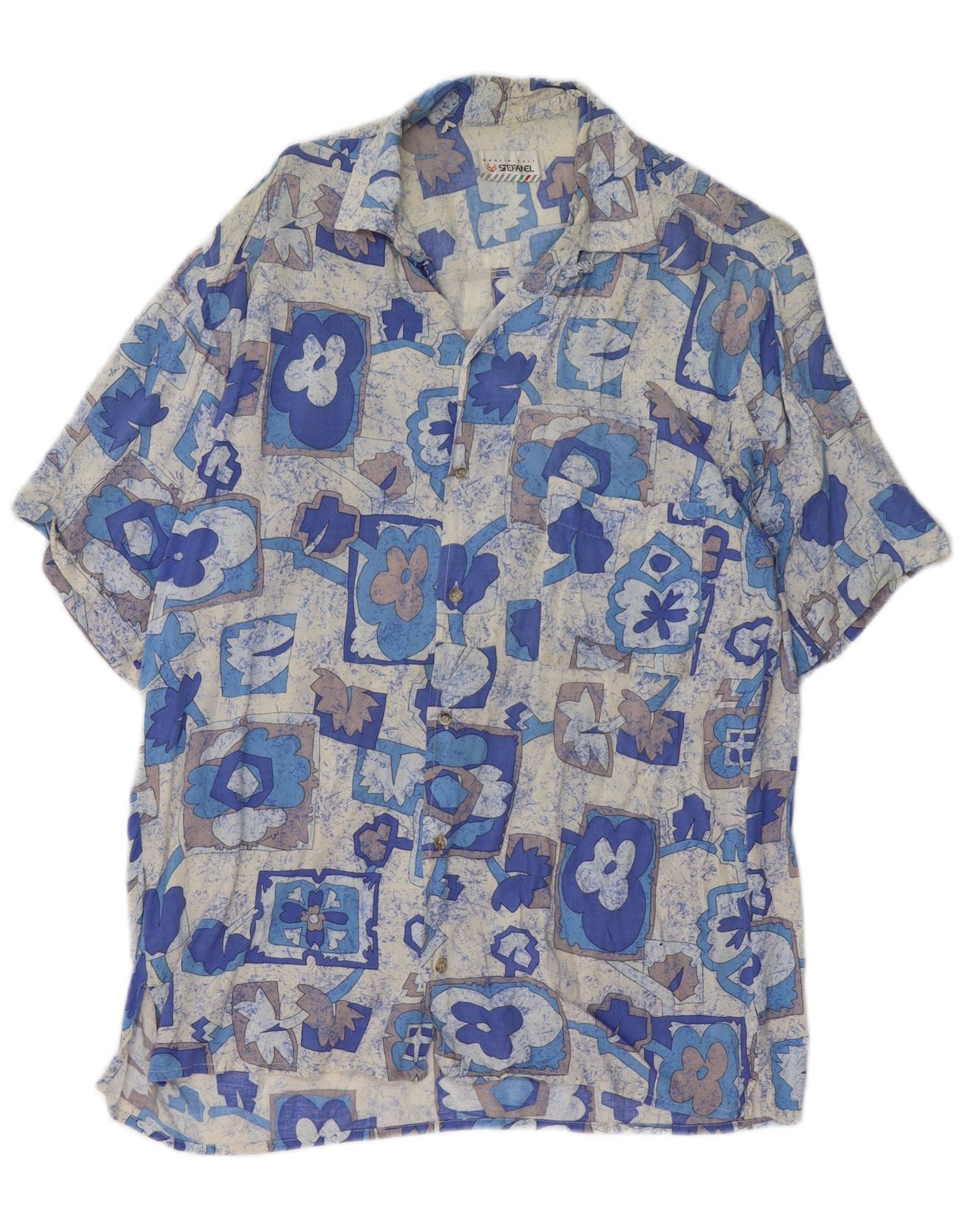 Camisa masculina STEFANEL manga curta azul médio patchwork viscose