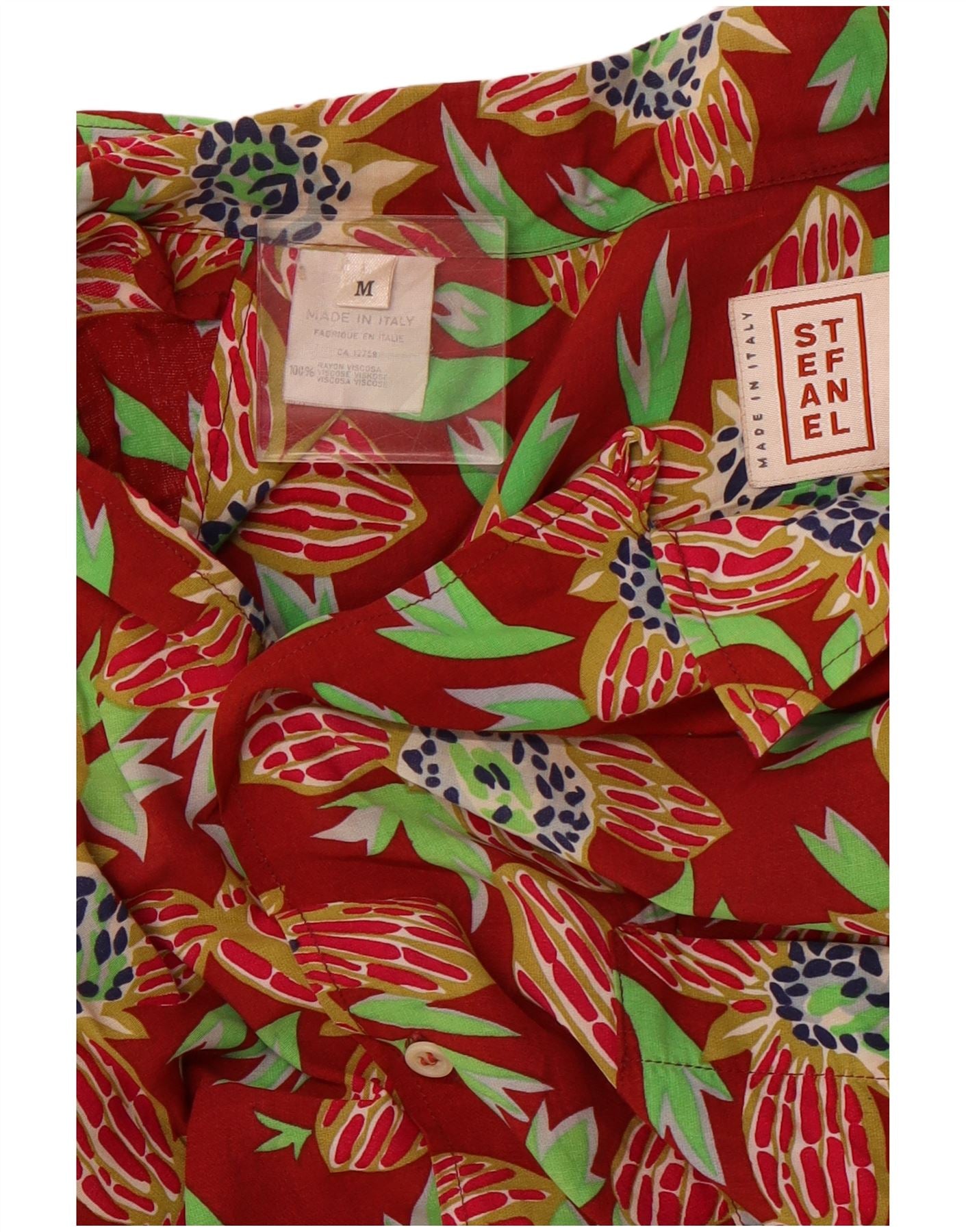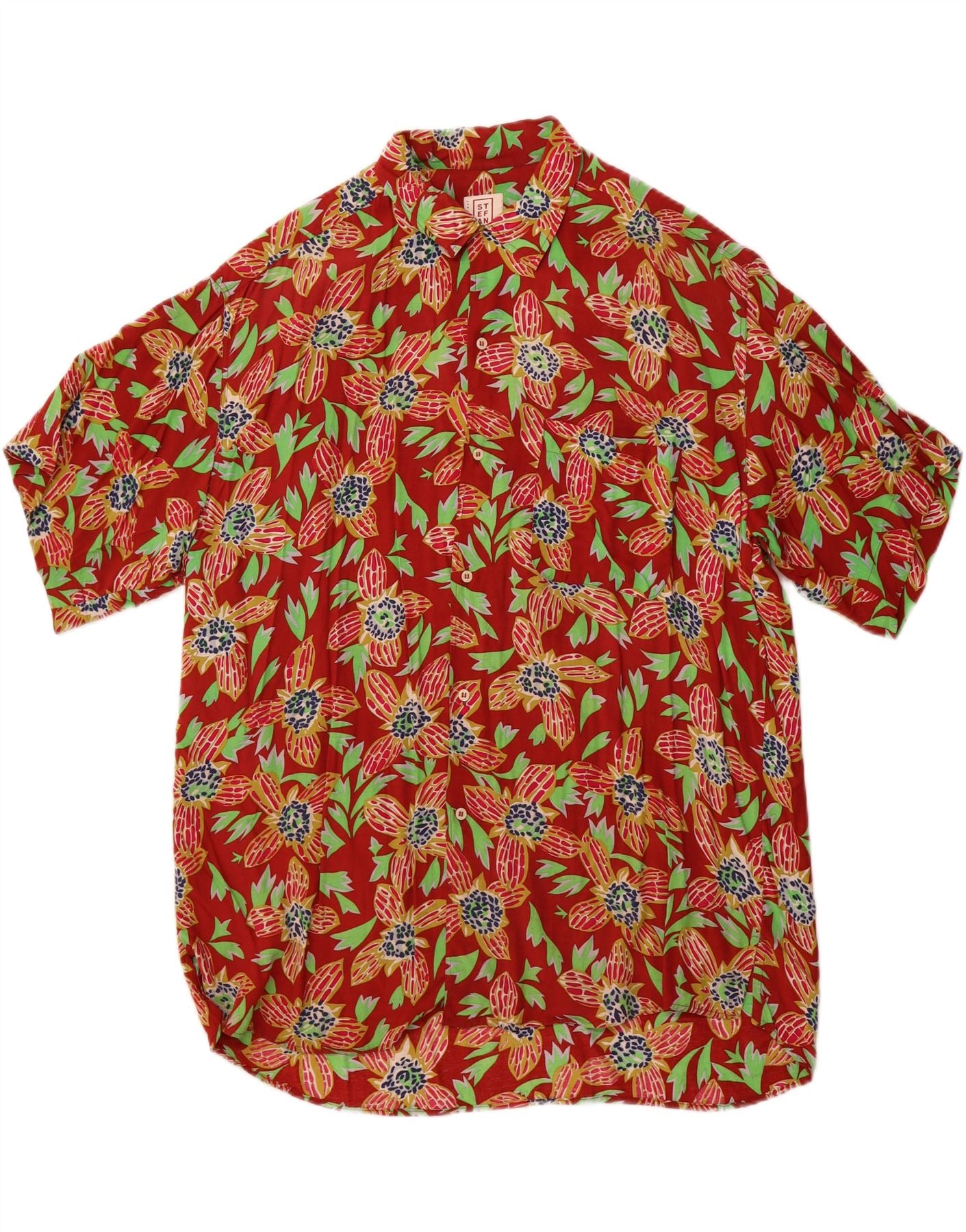 Camisa masculina de manga curta STEFANEL média vermelha floral rayon havaiana