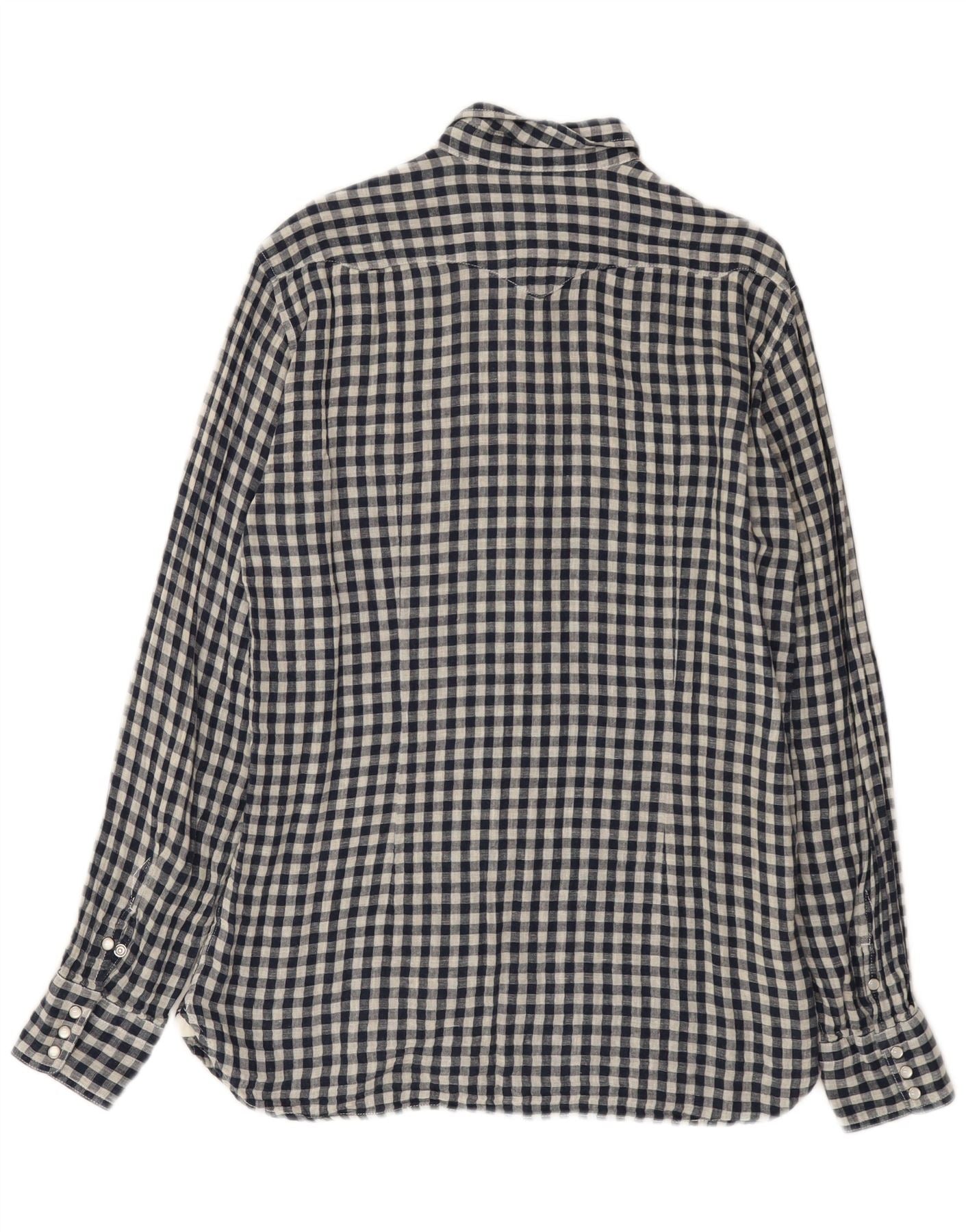 Camisa masculina ocidental Stefanel grande algodão guingão azul marinho