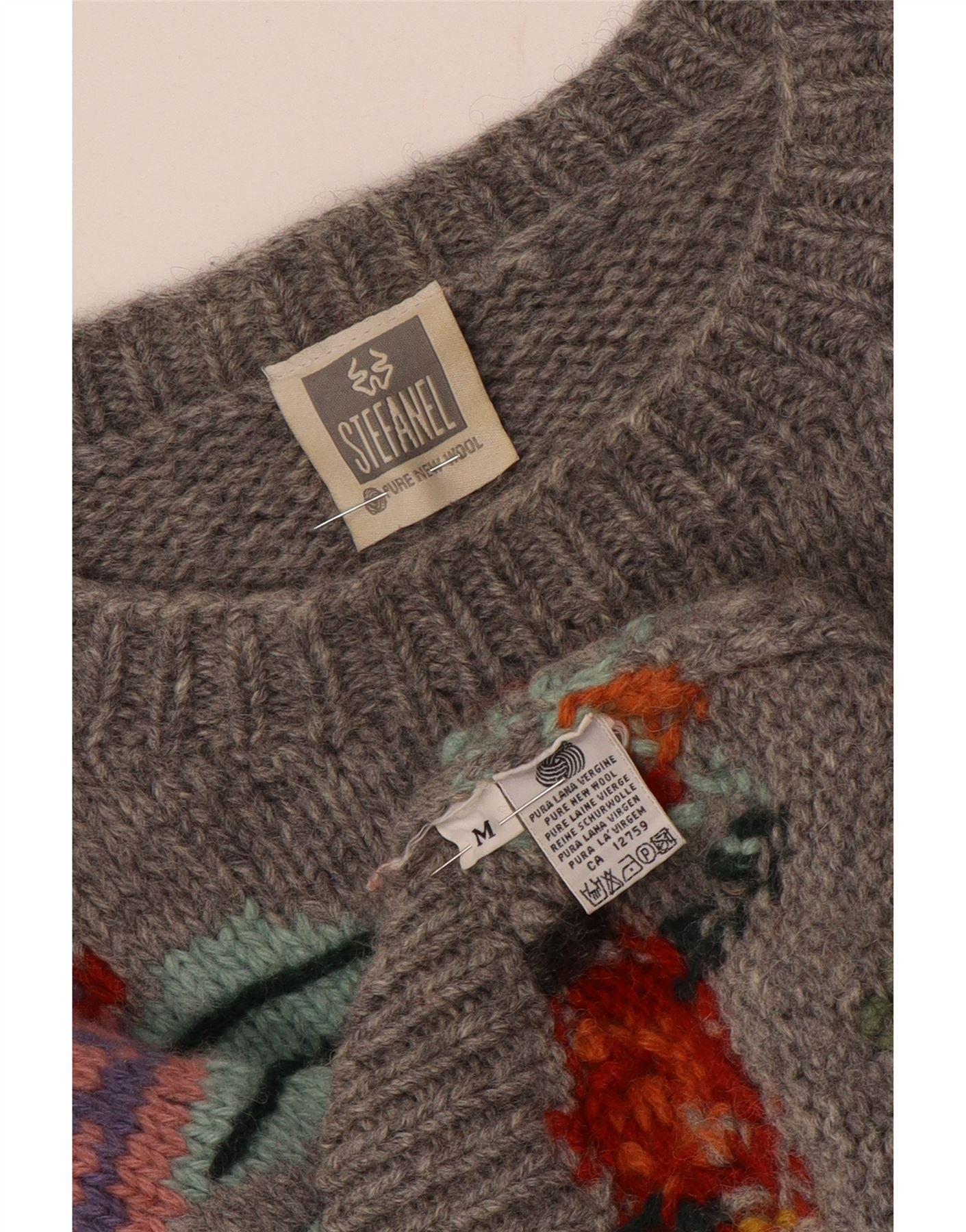 Suéter feminino STEFANEL com gola canoa Reino Unido 14 cinza médio floral