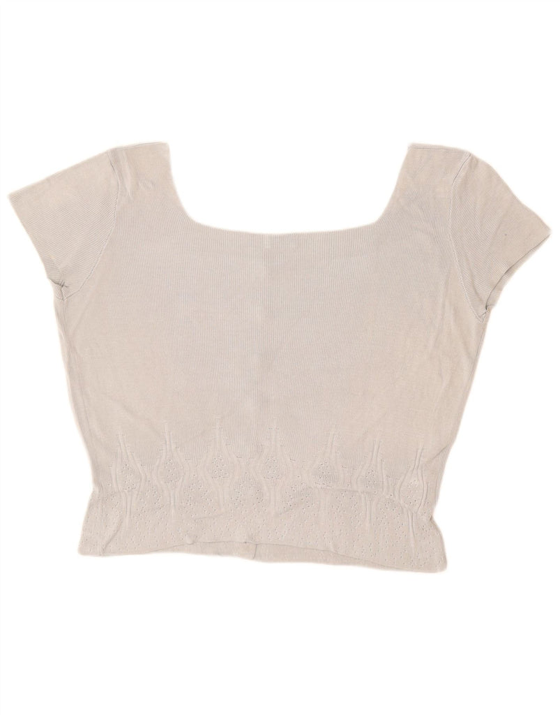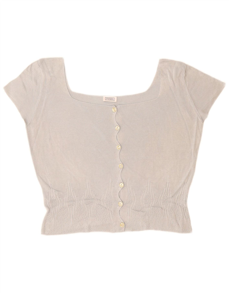 STEFANEL Womens Crop Short Sleeve Cardigan Sweater UK 14 Medium Blue Rayon