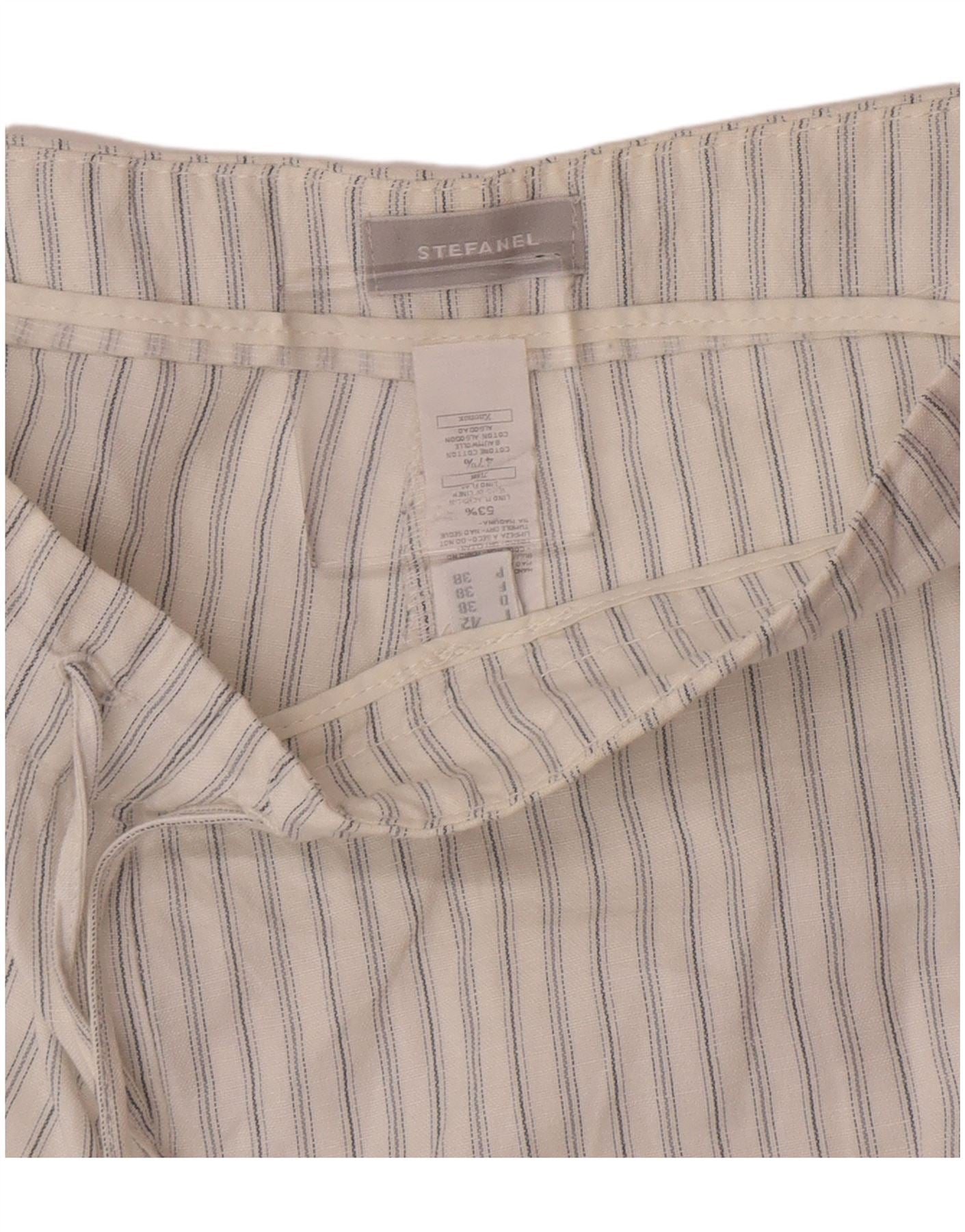 Calça feminina Stefanel folgada IT 42 médio W30 L32 linho listrado branco
