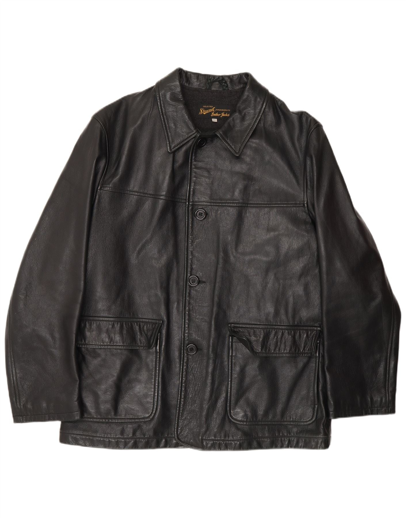 Jaqueta de couro masculina STEWART UK 44 2XL couro preto clássico