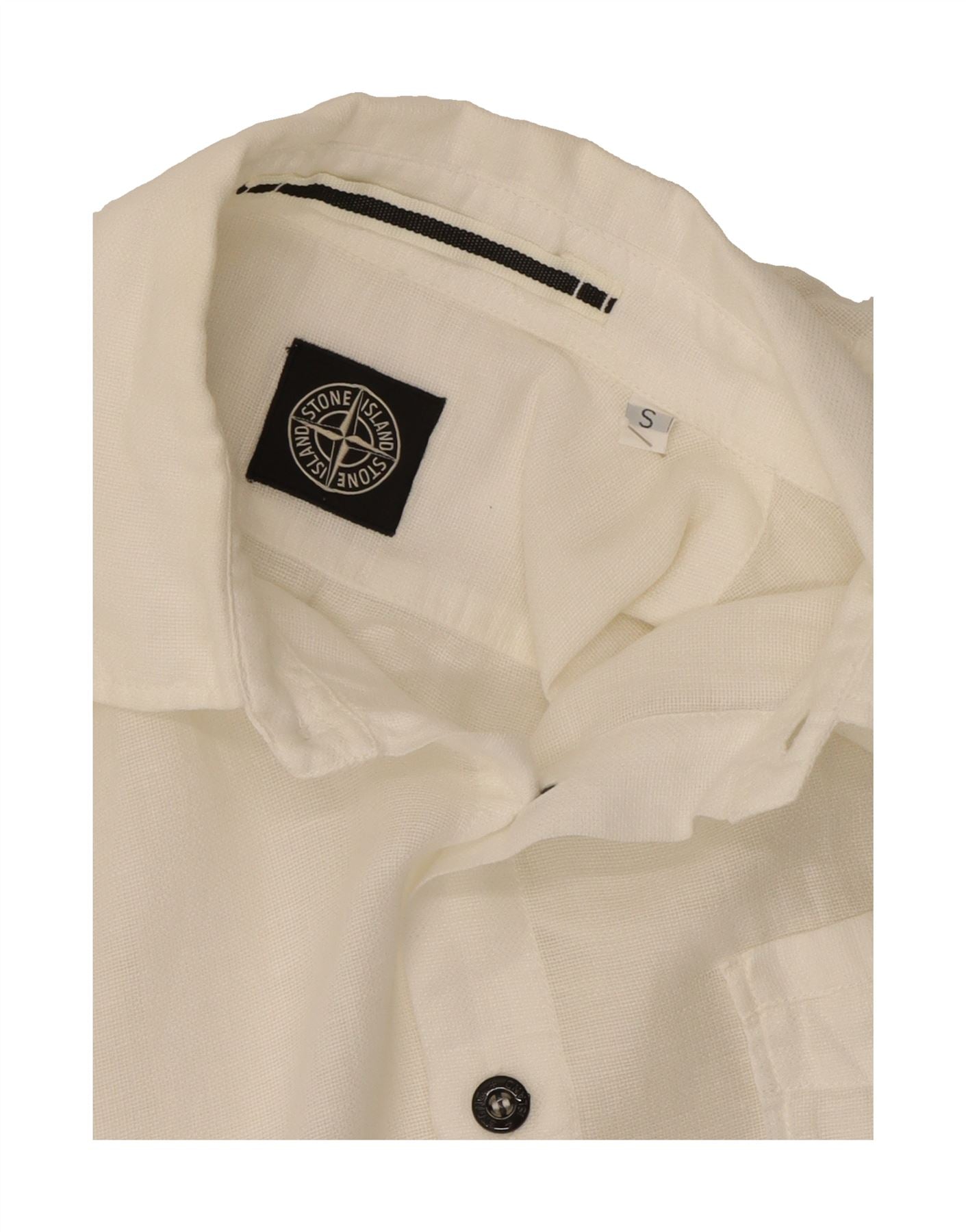 STONE ISLAND Camisa masculina de manga curta pequena de algodão branco