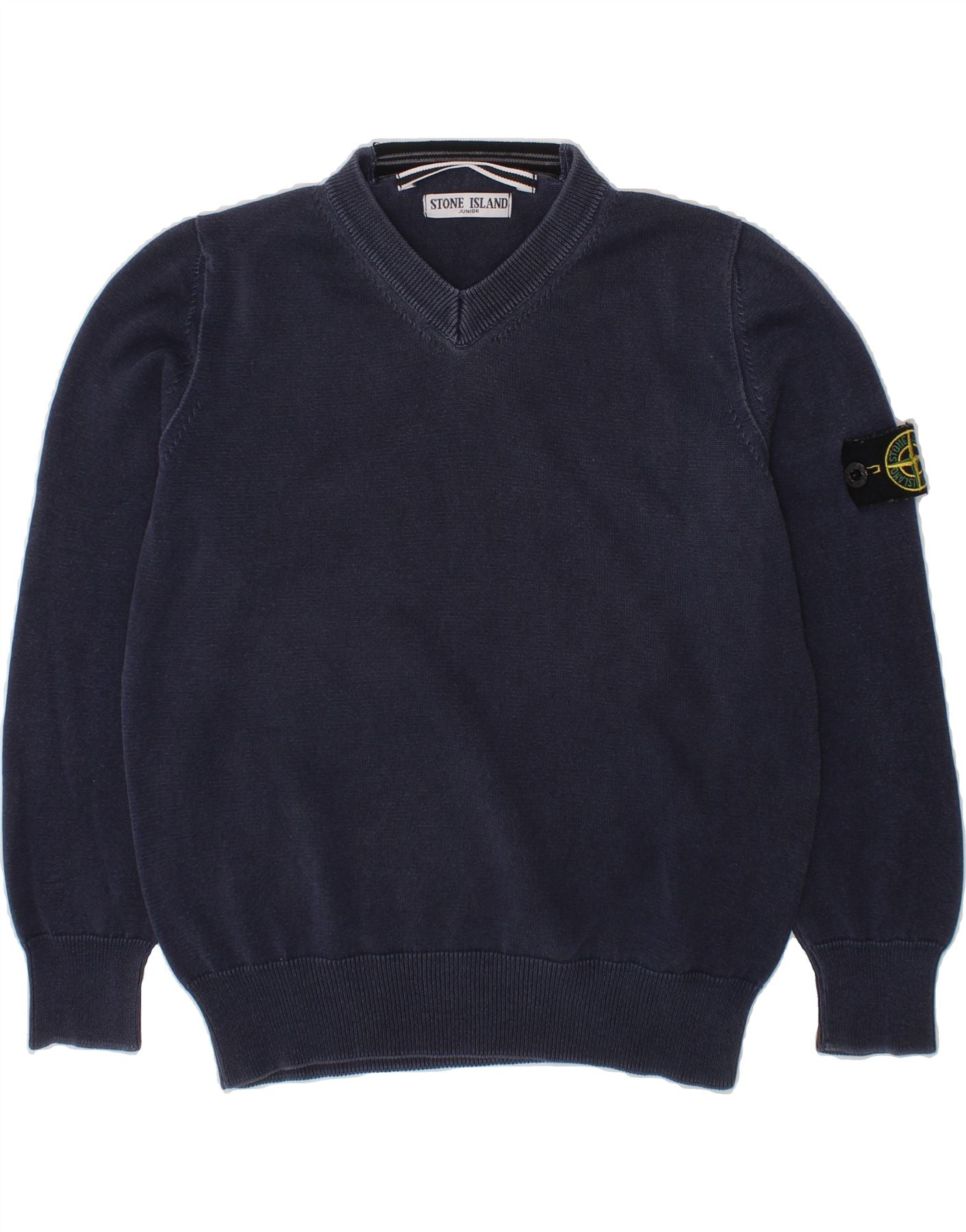 STONE ISLAND Suéter masculino com decote em V 7-8 anos algodão azul marinho