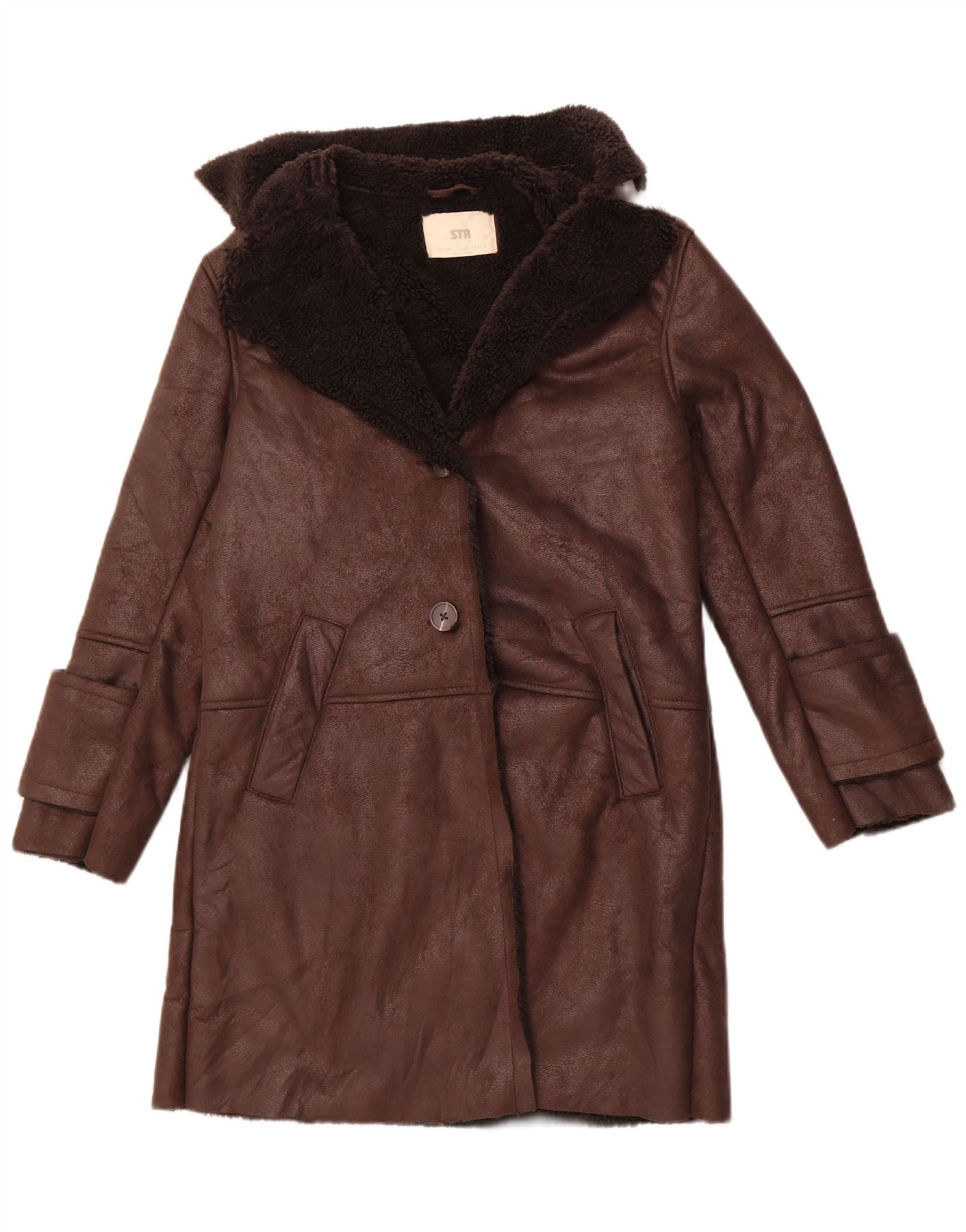 Sobretudo feminino sherpa grande STRADIVARIUS Reino Unido 6 XS poliéster marrom
