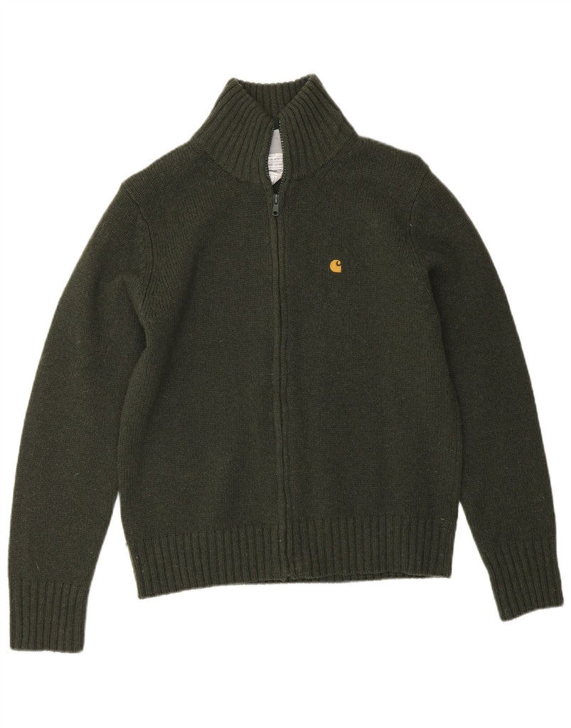 Suéter cardigã feminino CARHARTT Reino Unido 14 lã verde médio
