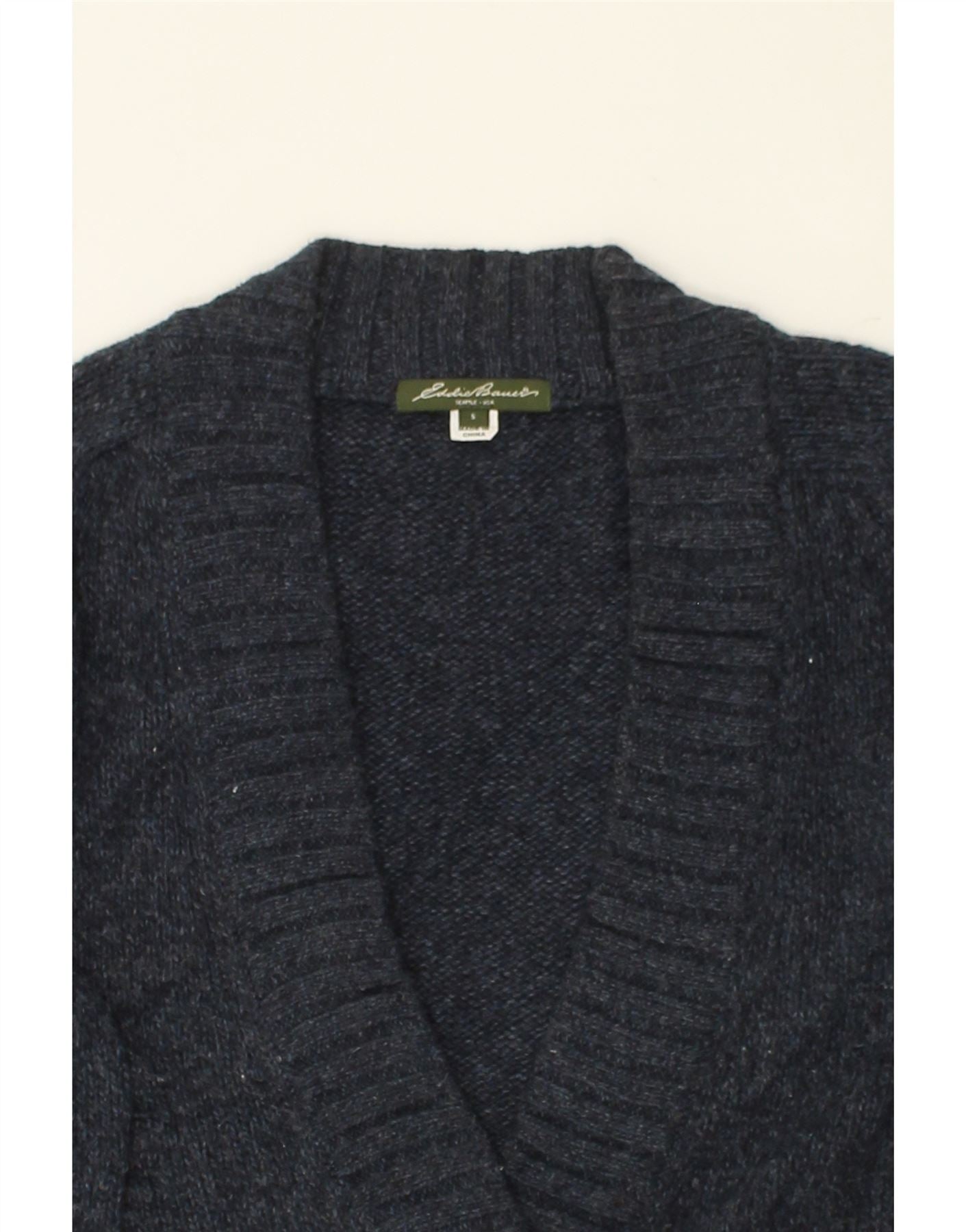 Suéter cardigã feminino EDDIE BAUER manga 3/4 Reino Unido 10 pequeno azul marinho