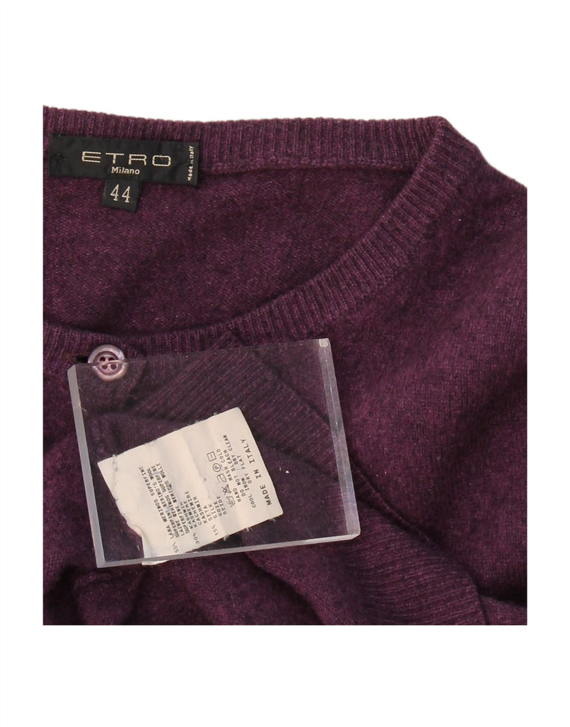 - Descrição da IA: Este suéter cardigã feminino Etro é feito de lã nova 100% virgem, oferecendo maciez luxuosa e elasticidade confortável. Possui decote redondo clássico e mangas compridas. O ajuste regular garante facilidade de uso. Um fecho de botão frontal fornece um detalhe refinado. Esta peça versátil incorpora o estilo clássico com conforto excepcional.