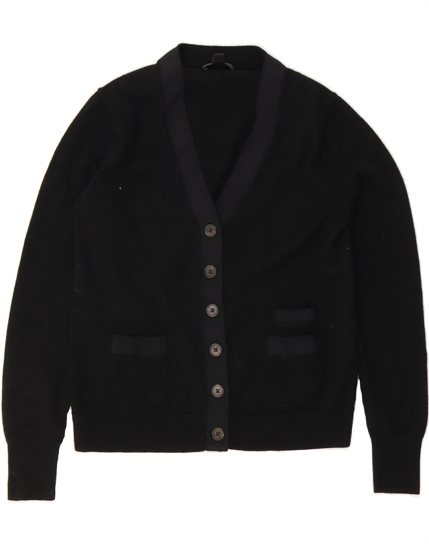 Suéter cardigã feminino J. CREW UK 10 pequeno lã merino preta