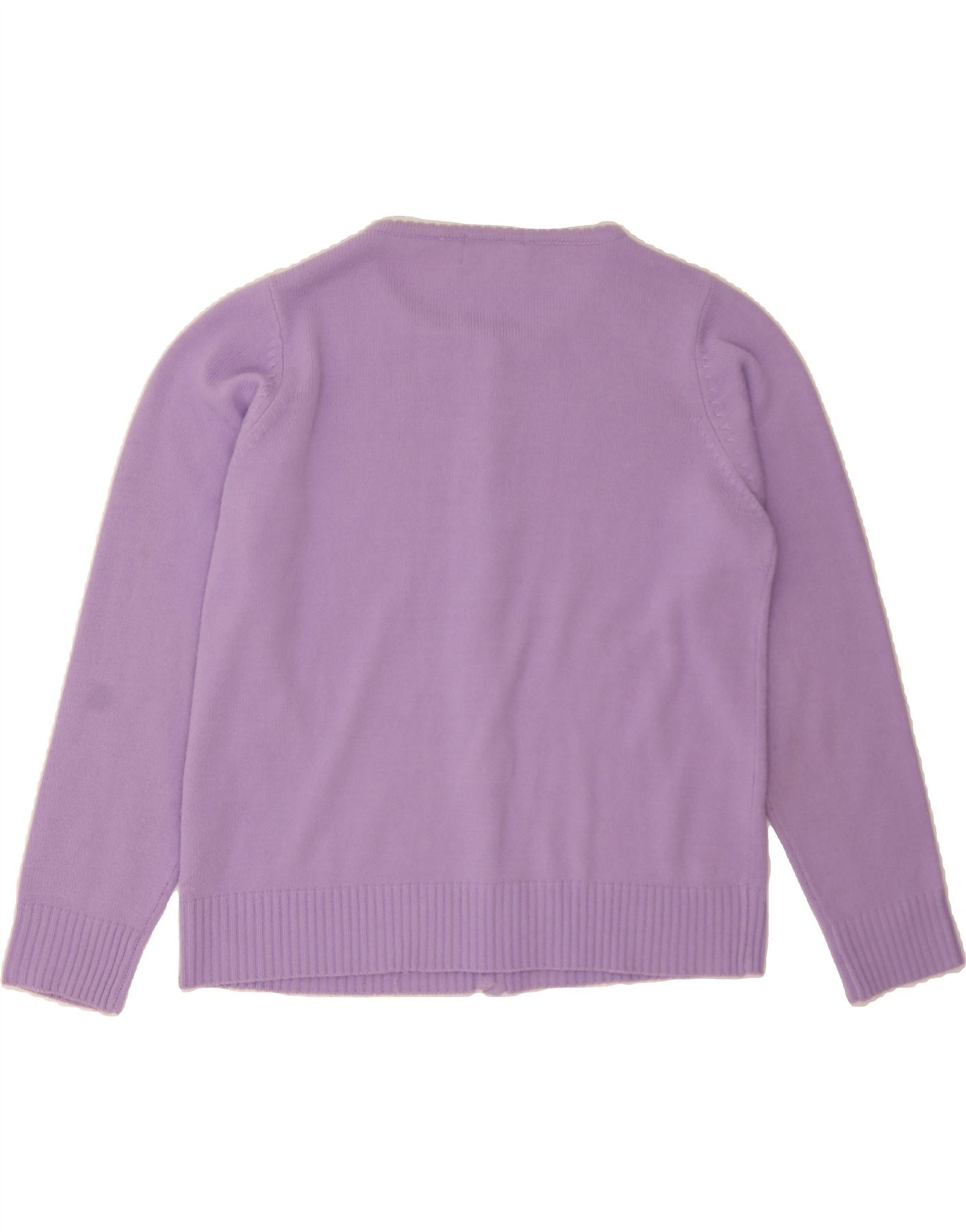 Suéter cardigã feminino VINTAGE Reino Unido 16 grande acrílico floral roxo