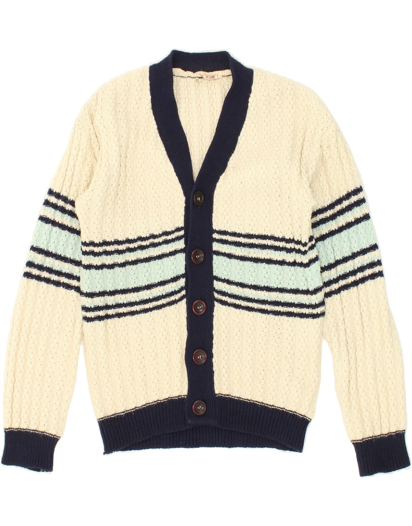 Suéter cardigã VINTAGE para meninos 14-15 anos acrílico listrado branco