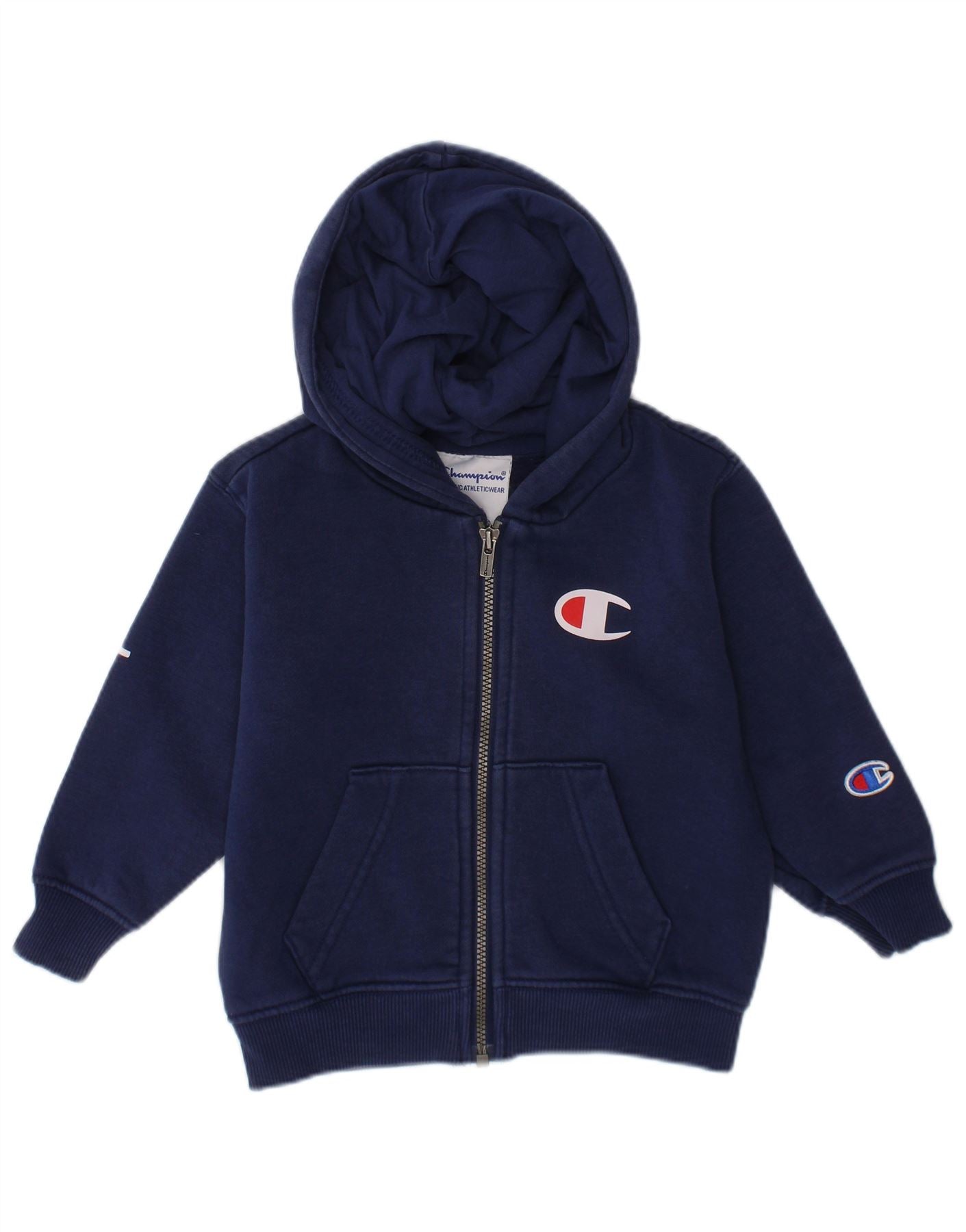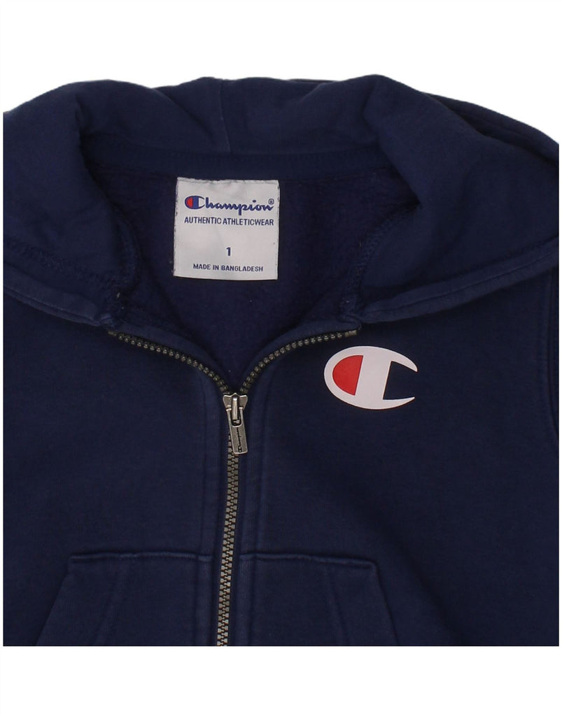 Suéter com capuz e zíper gráfico CHAMPION para meninos de 9 a 12 meses, algodão azul marinho
