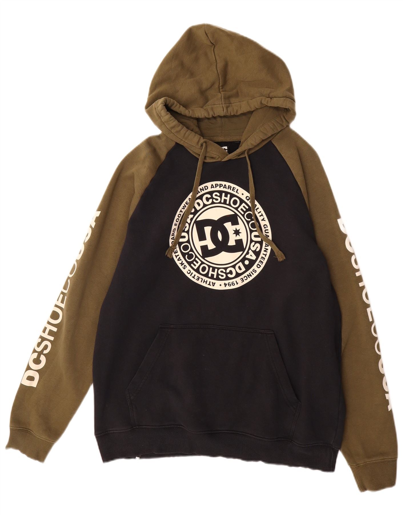 Suéter com capuz gráfico masculino DC médio cáqui algodão colorblock