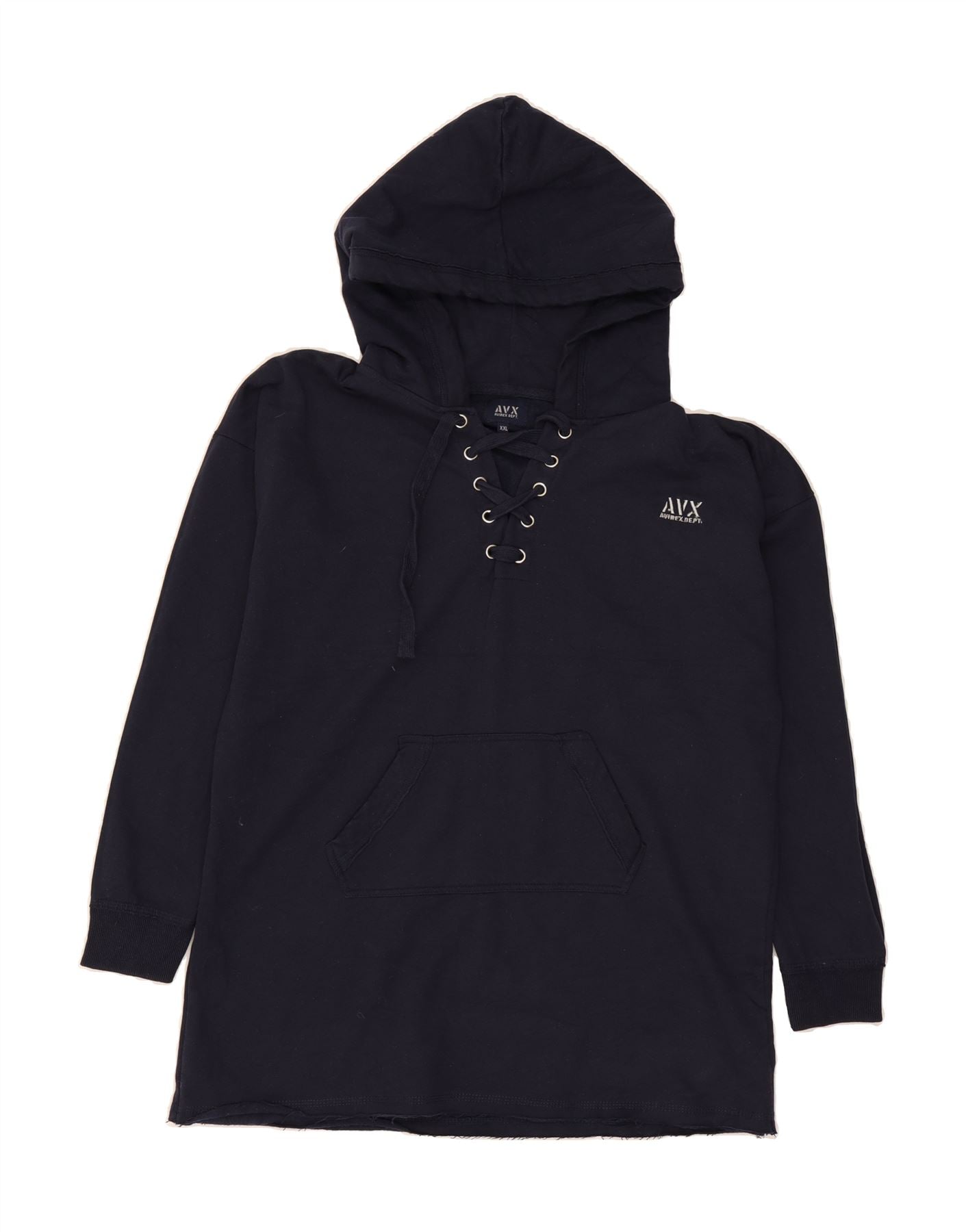 Suéter feminino Avirex Longline com capuz UK 20 2XL algodão azul marinho