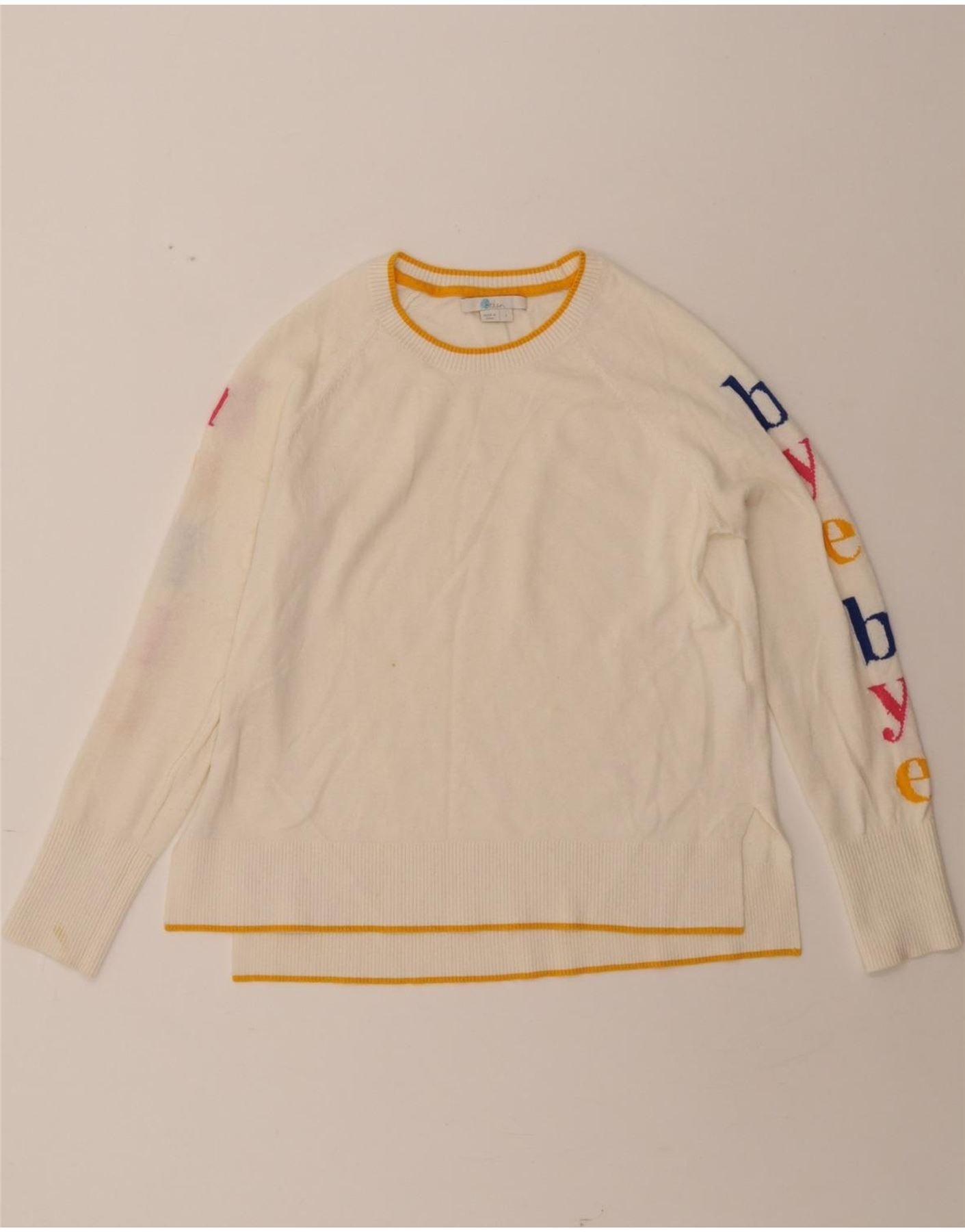 Suéter feminino BODEN com gola canoa e gola redonda Reino Unido 10 lã branca pequena
