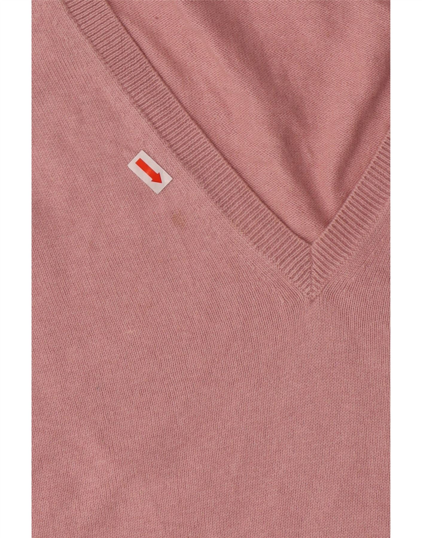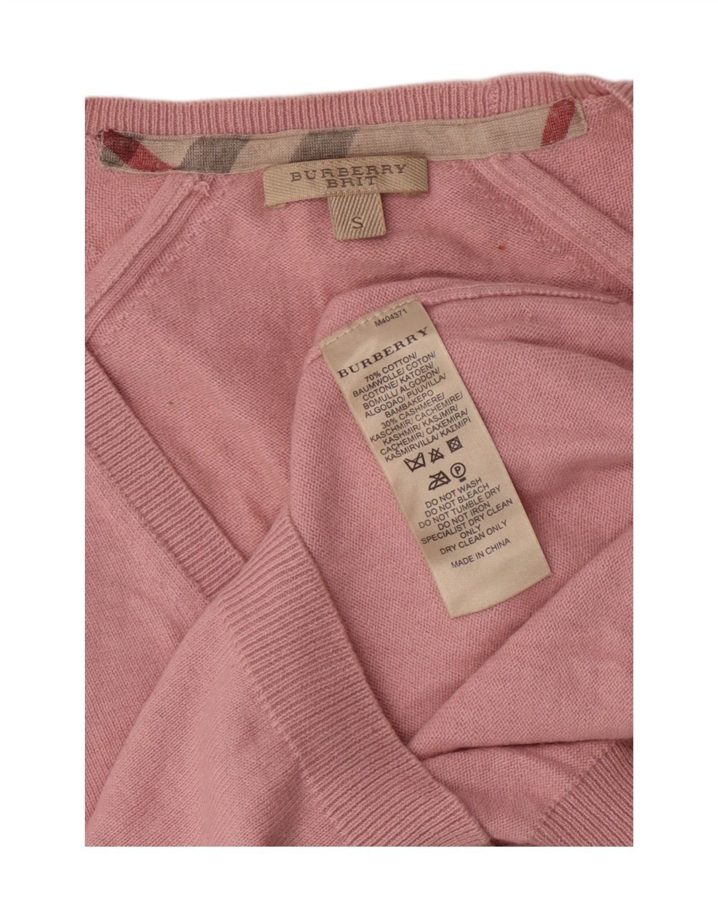 Suéter feminino BURBERRY com decote em V Reino Unido 10 pequeno algodão rosa