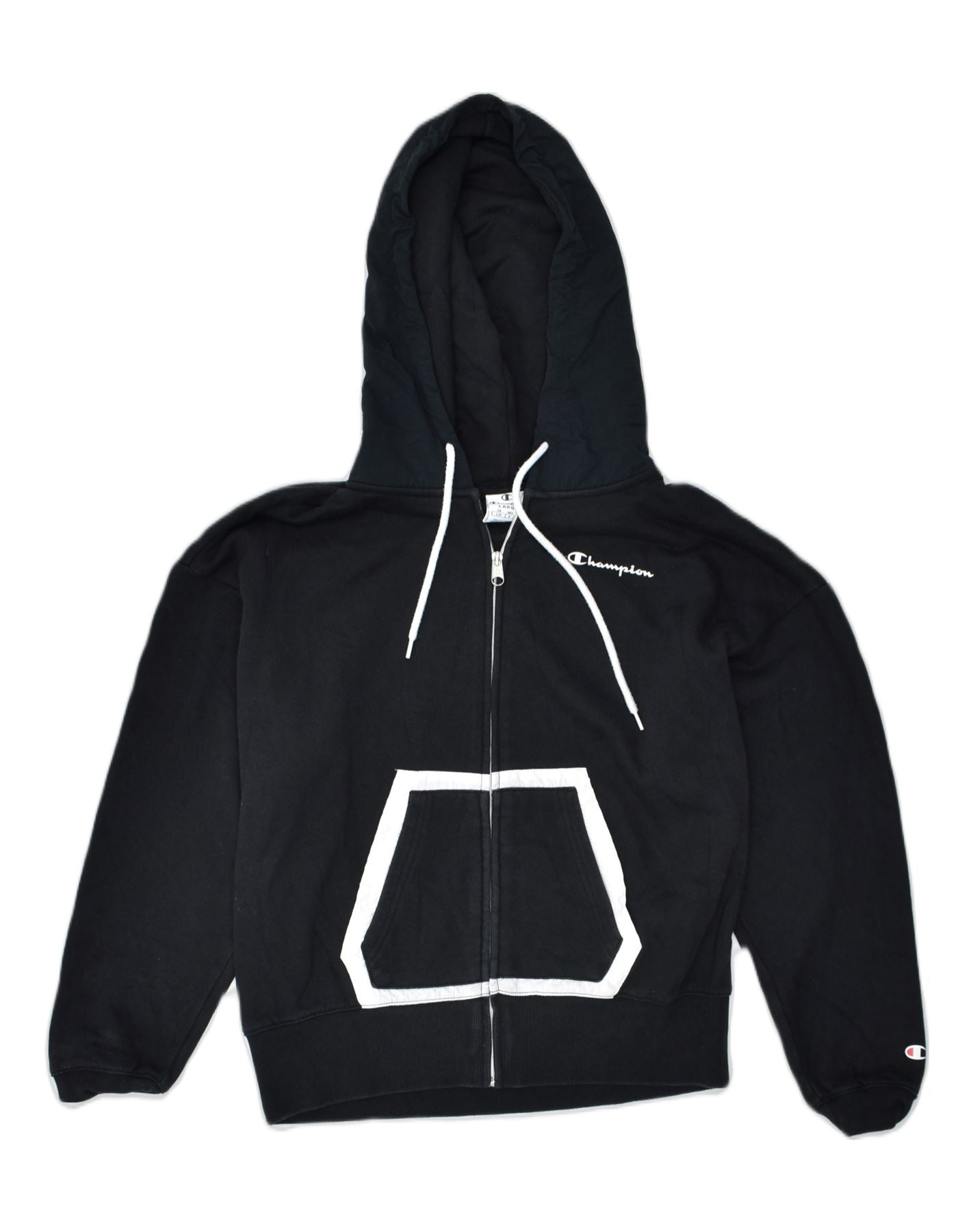 Home > Roupas de campeão vintage > mulheres > Capuz > Suéter feminino com capuz e zíper CHAMPION Reino Unido 14 grande algodão preto