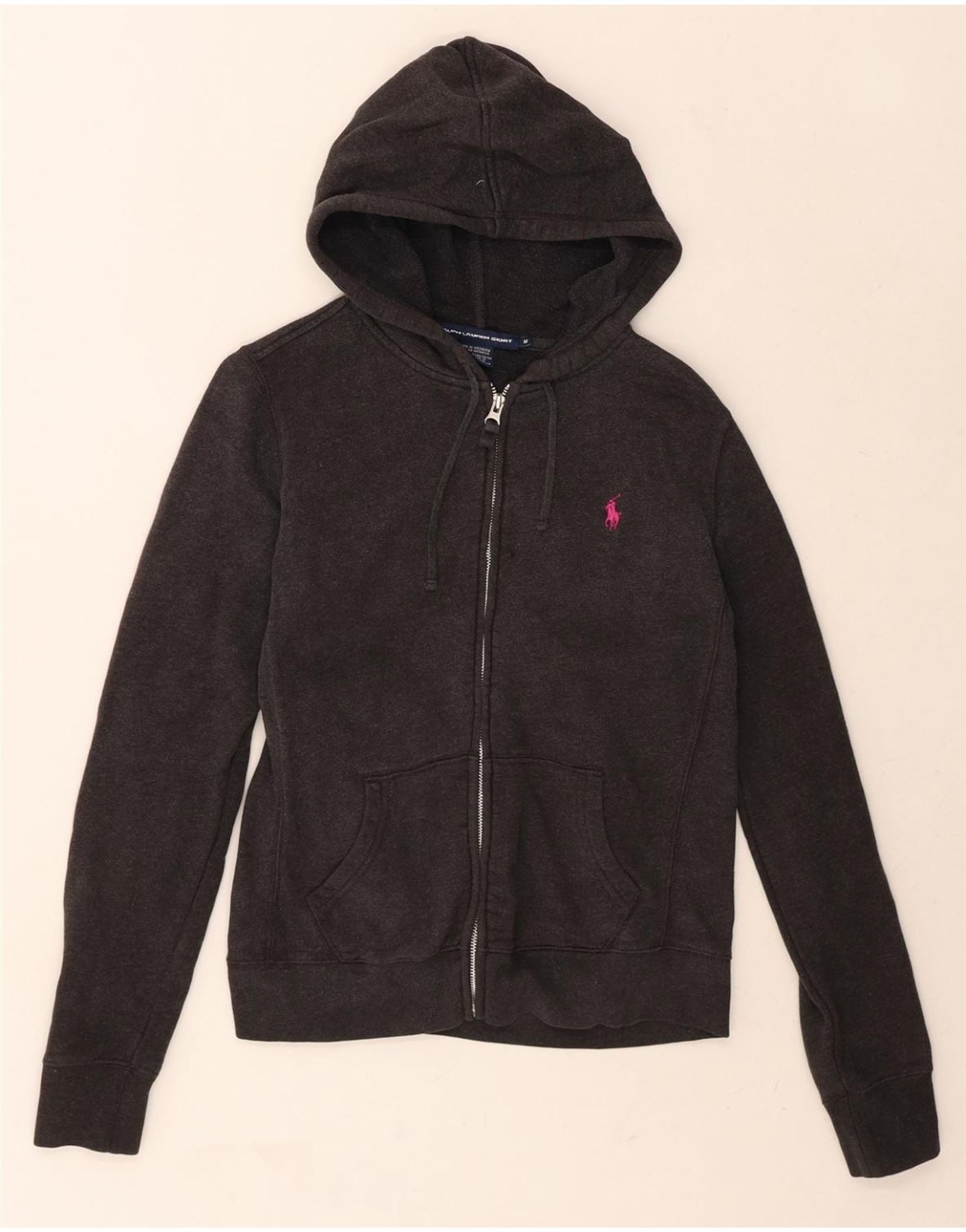 Suéter feminino com capuz e zíper RALPH LAUREN Reino Unido 12 algodão cinza médio