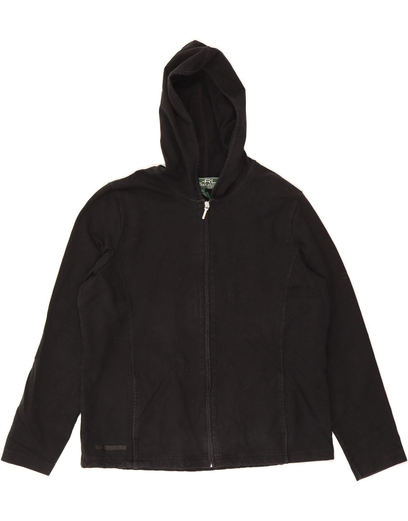 Suéter feminino com capuz e zíper RALPH LAUREN UK 18 XL algodão preto