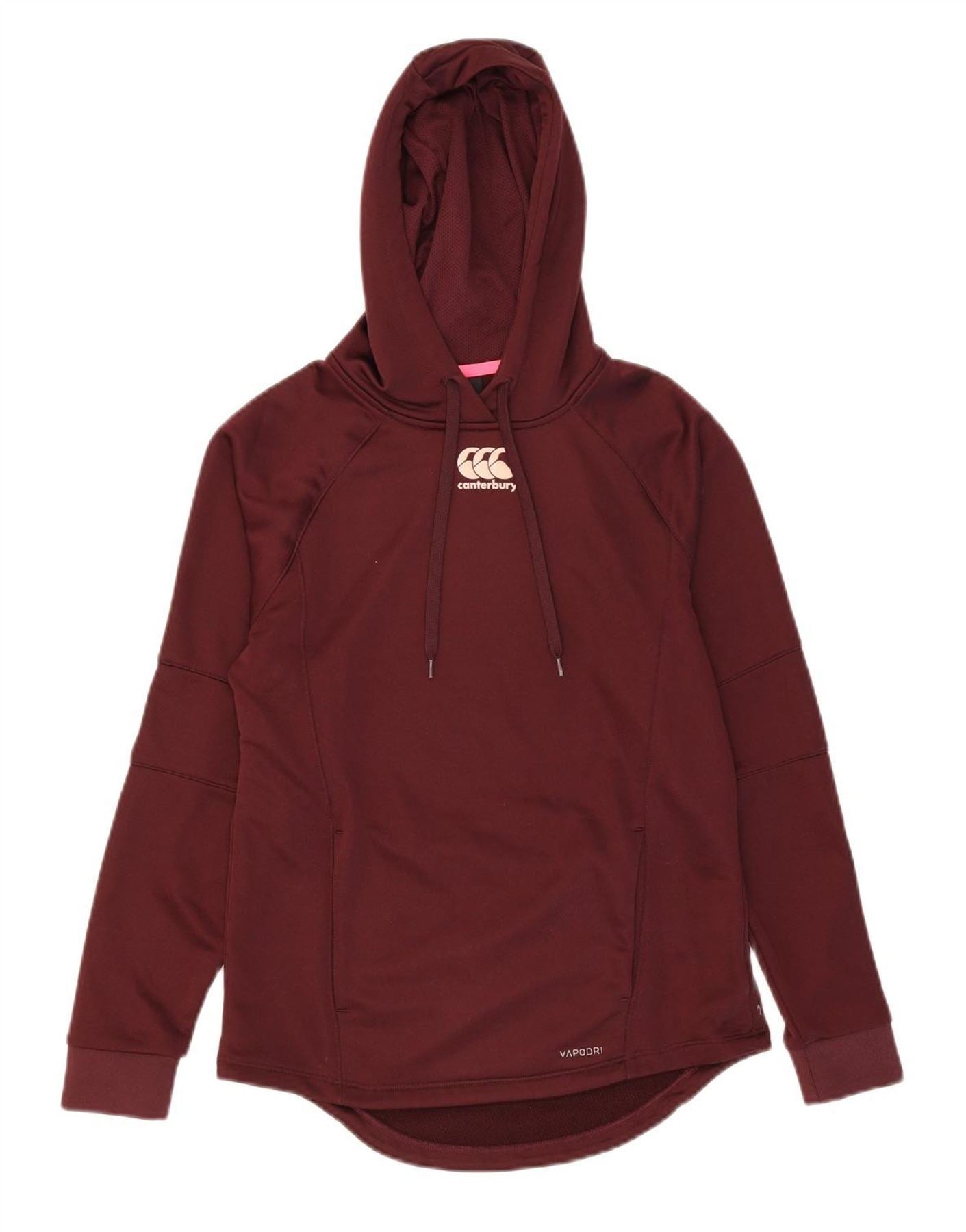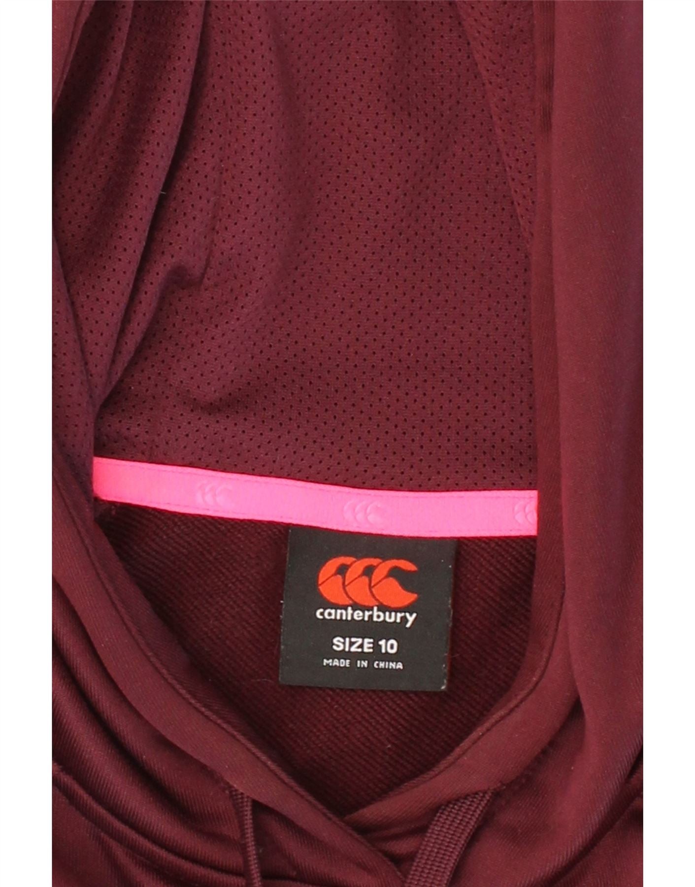 Suéter feminino com capuz gráfico CANTERBURY Reino Unido 10 pequeno poliéster cor de vinho