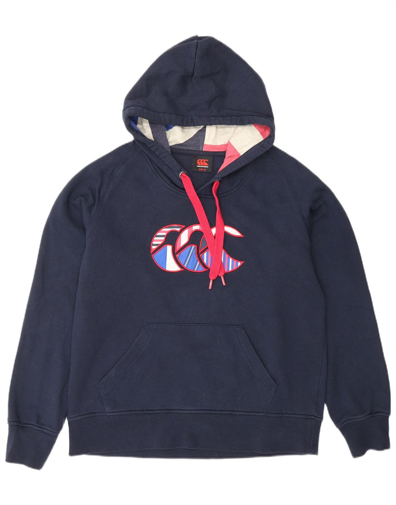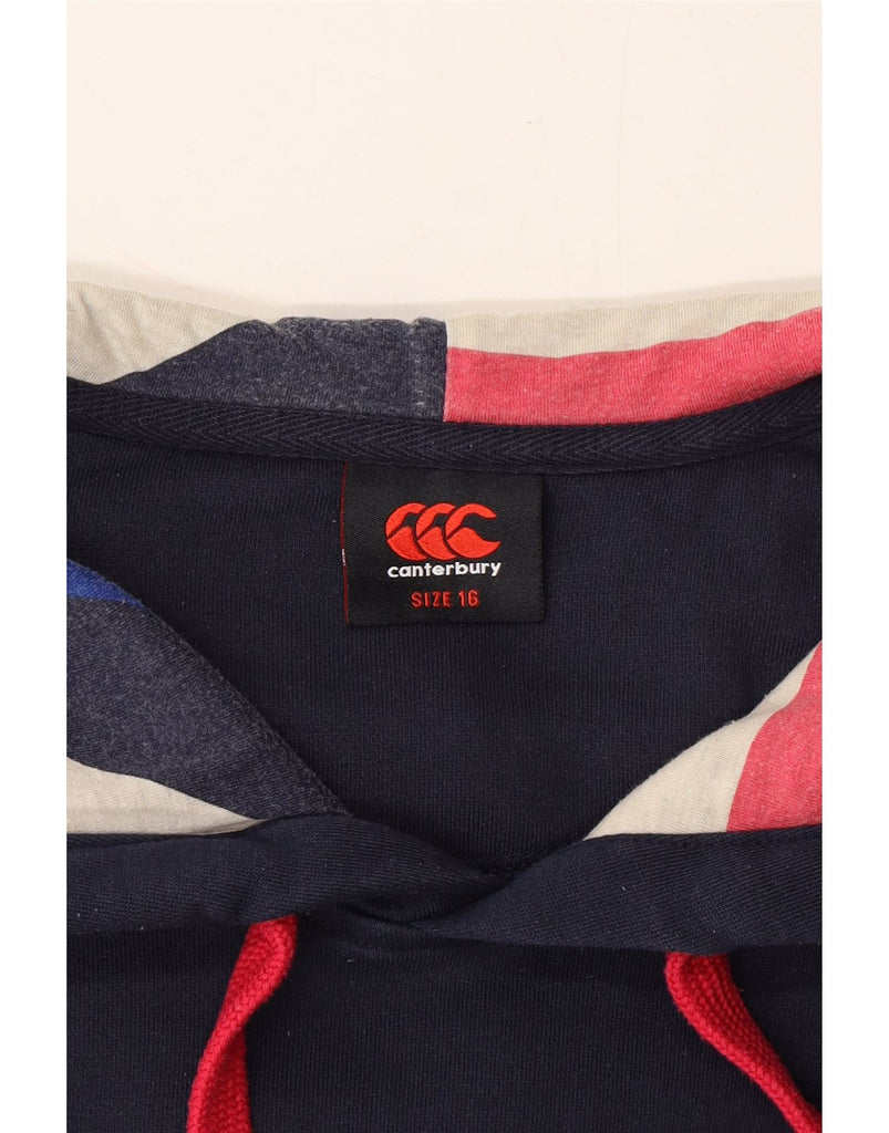 Suéter feminino com capuz gráfico CANTERBURY Reino Unido 16 grande algodão azul marinho