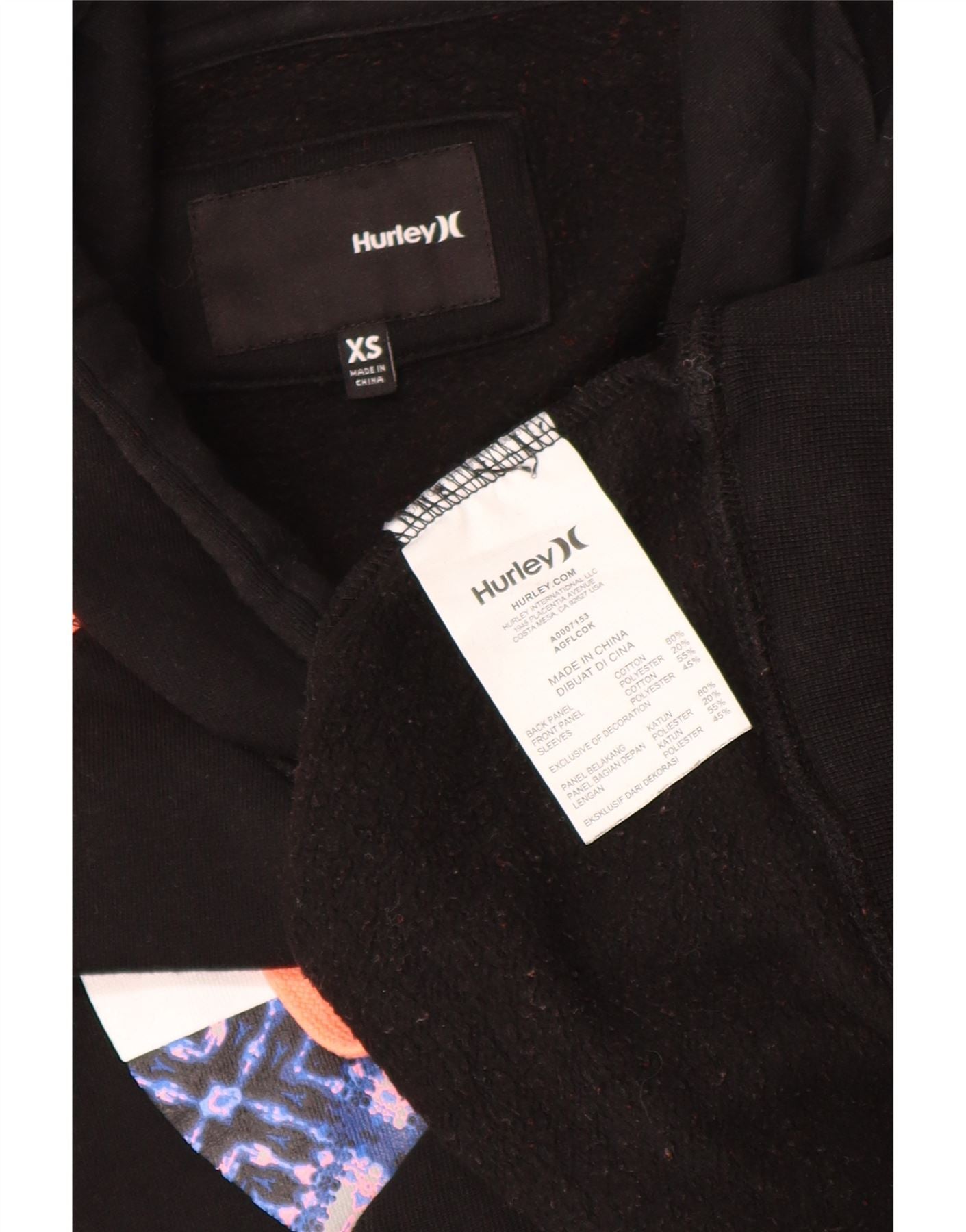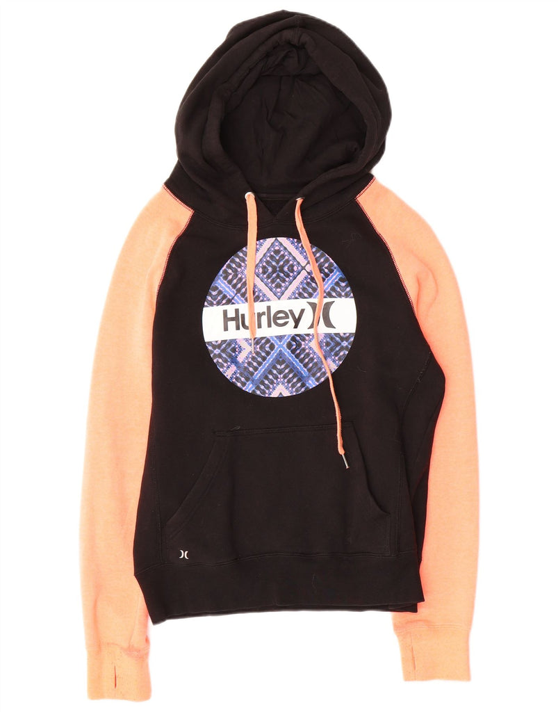 Suéter feminino com capuz gráfico superdimensionado HURLEY Reino Unido 6 XS preto colorblock