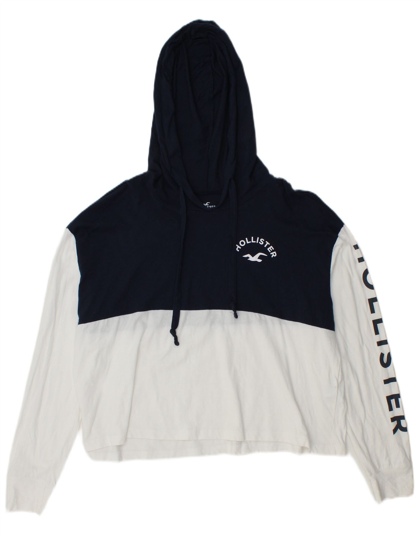 Suéter feminino com capuz grande HOLLISTER Boyfriend Reino Unido 10 pequeno branco